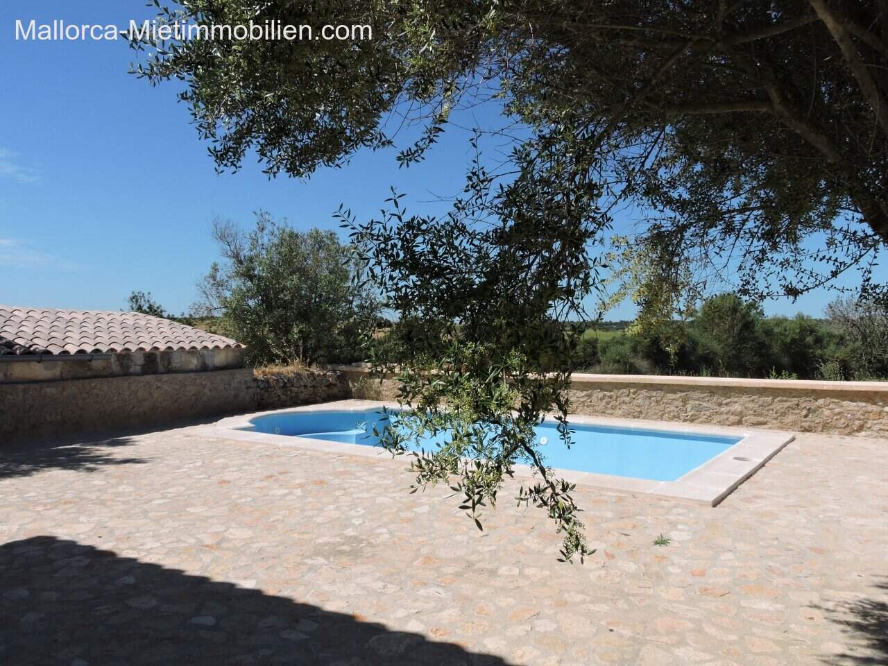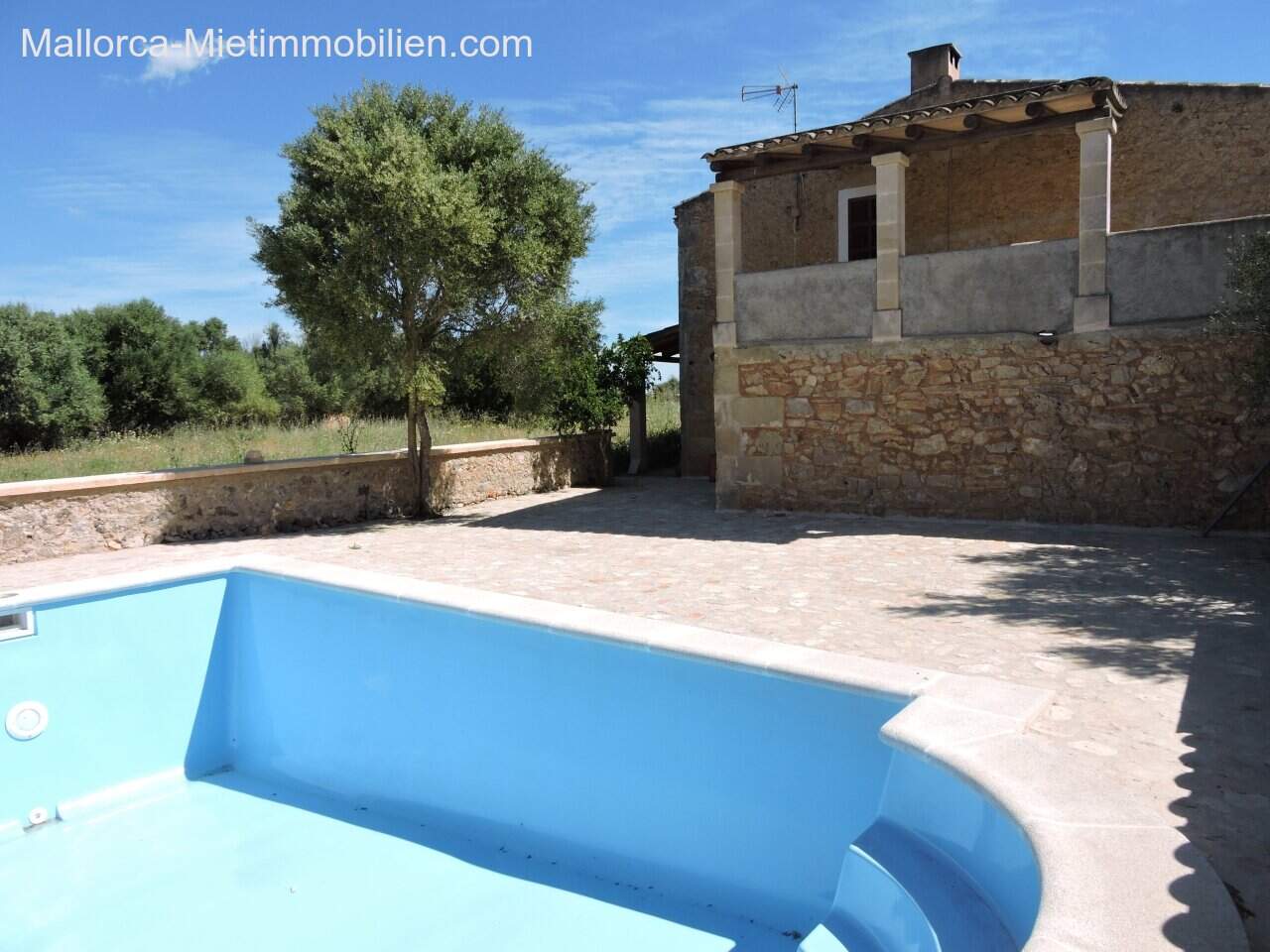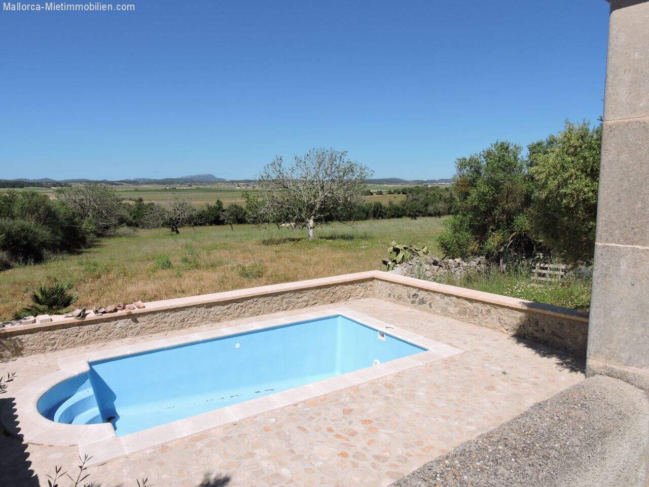 XXL-Gelände vor der Finca gehört nicht zur Rent – ab Hoftor, hinter der Finca großer, mit Steinmauer eingeschlossener Außenbereich, Poolterrasse sowie kleine Casita mit ca. 8m² mit Steckdose.