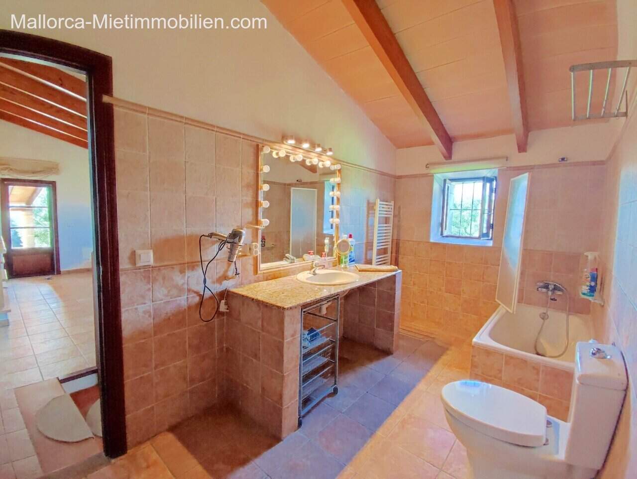 Traumhafter Inselweitblick. Auf 2 Ebenen wurden Wohn- und Schlafbereiche verteilt. Sehr idyllisches Kamin-Wohnzimmer. Moderne Küche. Die Zimmer sind nicht klein und verfügen meist über Einbauschränke. Ein Außenbad für den Poolbereich. Gute Anbindung zum Airport in ca. 25 Minuten. Manacor in ca. 10 Minuten.