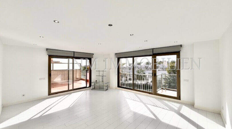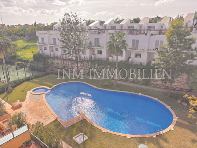 The Rented apartment verfügt über drei Schlafzimmer, zwei Badezimmer, einen großzügigen Wohn- und Essbereich sowie eine moderne Einbauküche. Drei Terrassen laden zum Entspannen im Freien ein, während der Gemeinschaftspool zusätzliche Möglichkeiten zur Erholung bietet. Zur Apartment gehören außerdem zwei Tiefgaragenstellplätze, die praktischen Komfort garantieren. Die Ausstattung umfasst eine Klimaanlage warm/kalt sowie Jalousien, die für zusätzlichen Schutz und Privatsphäre sorgen.