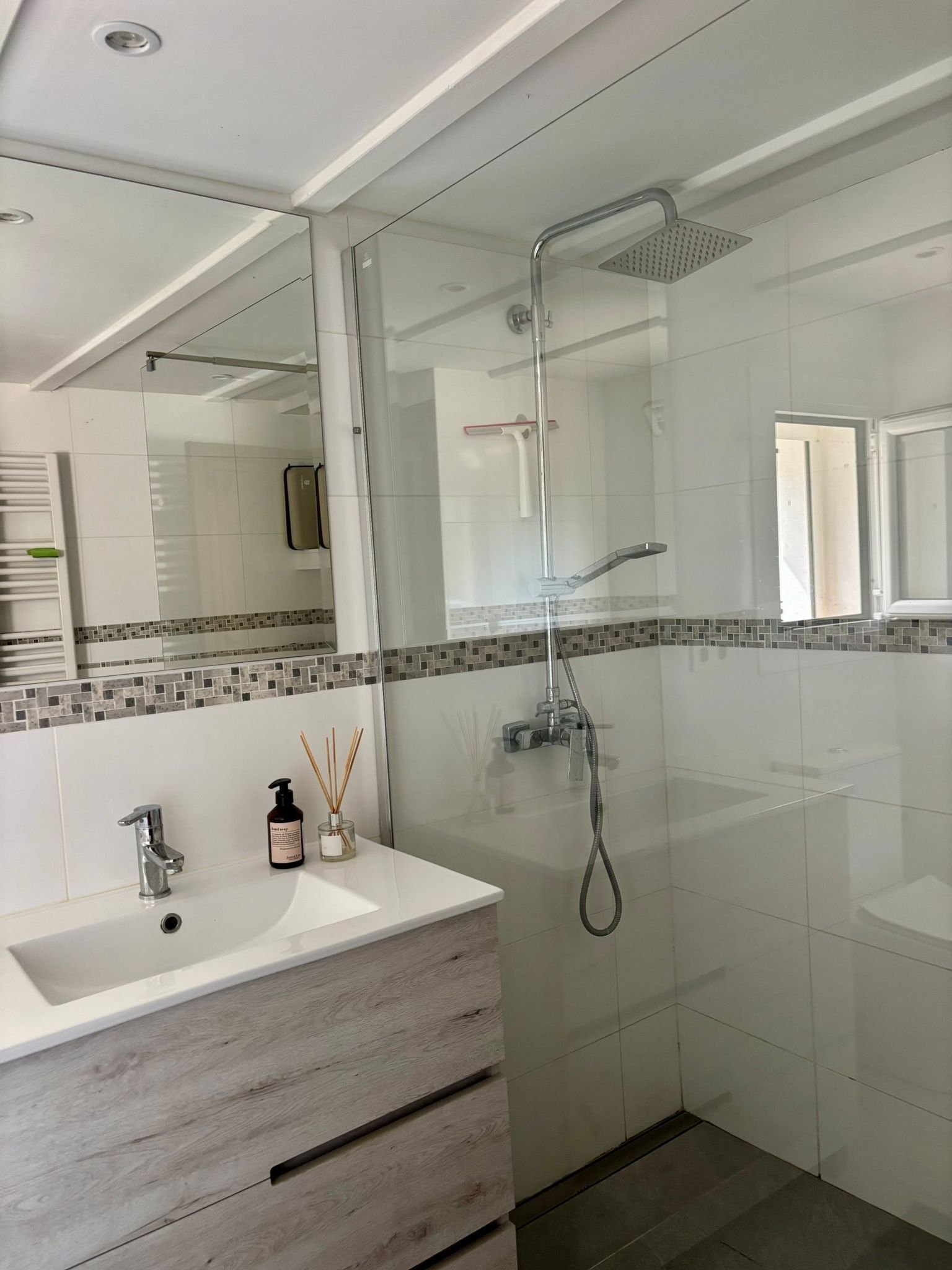 - 1 modernes Badezimmer mit ebenerdiger Dusche