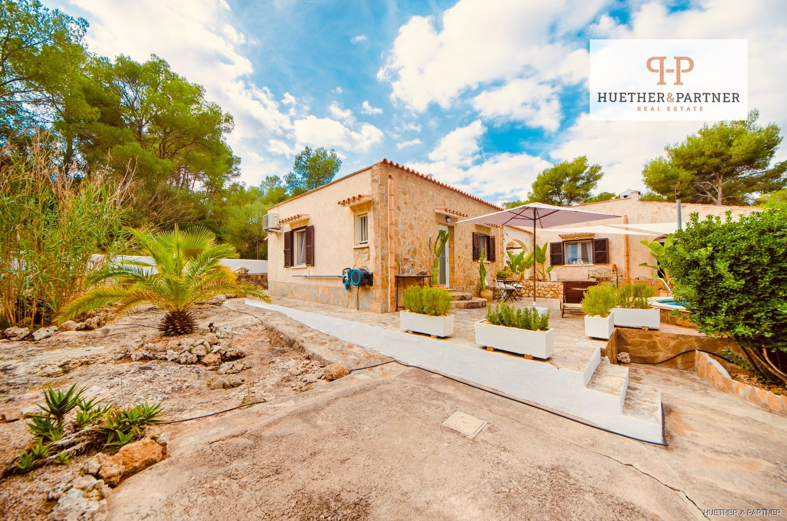 Die Umgebung überzeugt mit Pinienwäldern, Wiesen und typischen Bäumen wie Feigen, Johannisbrot und Mandel. Fußläufig erreichen Sie idyllische Buchten wie Cala Domingos oder Cala Antena. Ein besonderes Ausflugsziel ist der historische Fischerhafen von Portocolom, den man über einen Wanderweg entlang der Cala S’Algar erreicht.