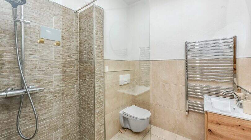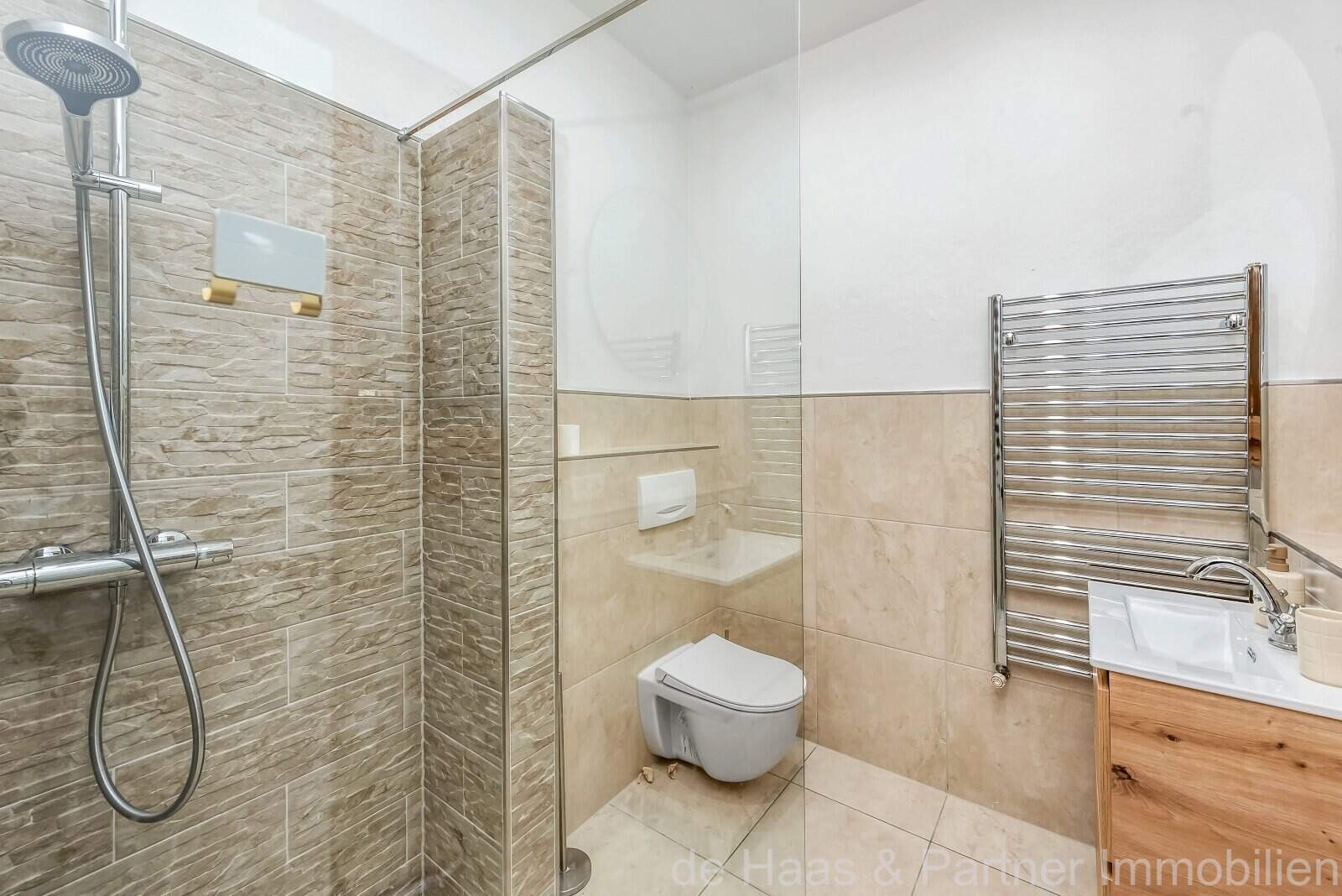 Im Obergeschoss ist das Masterschlafzimmer und ein neues Bad, dem eine Terrasse vorgelagert ist.