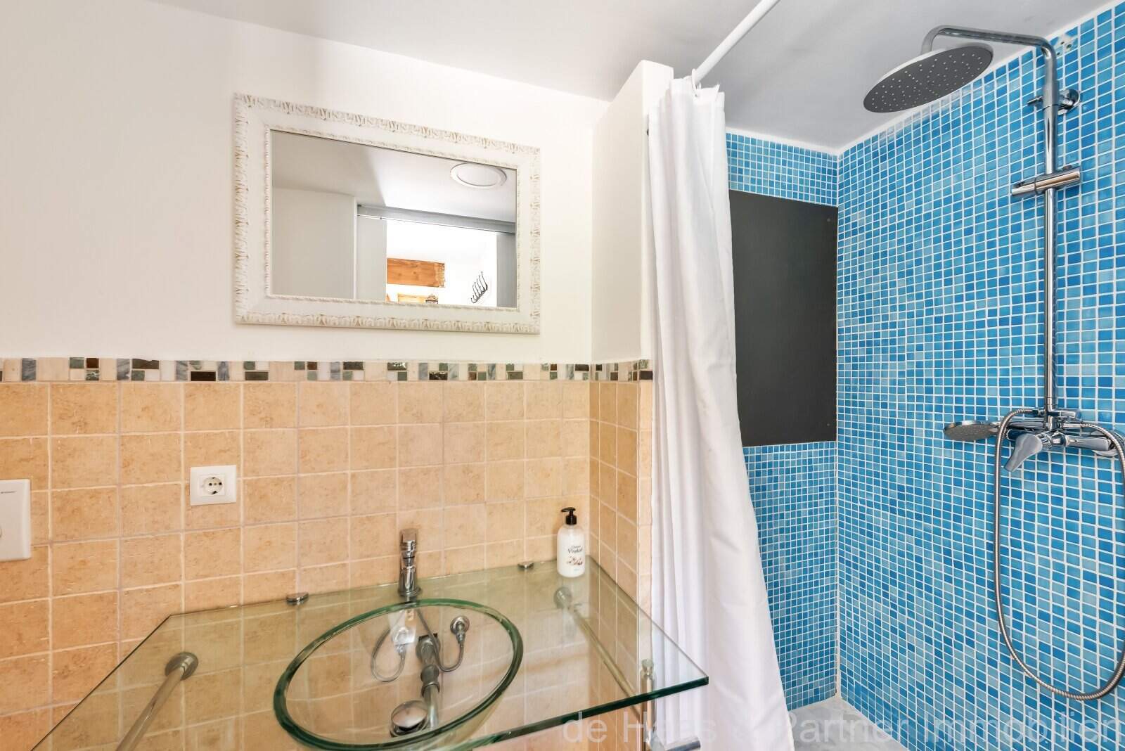 Im Erdgeschoss befindet sich ein großes Wohnzimmer mit offener Küche und Kamin. Um den gesamten Wohnbereich befinden sich zahlreiche Terrassen, viele auch überdacht. Von hier aus gelangt man auch zu zwei kleinen, separaten Apartments für Gäste, die viel Privatsphäre wünschen.