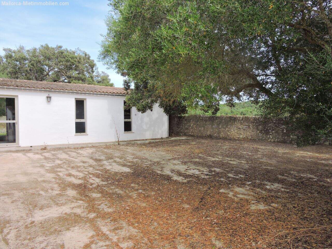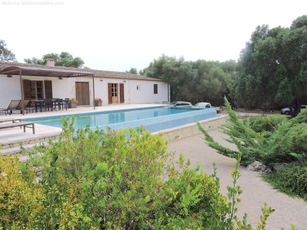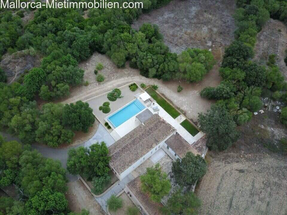 Finca for rent in Manacor with pool: Finca in a low-maintenance, romantic woodland garden with some landscaped, typical Mediterranean plants and a spacious 12m² pool on a 30,000m² plot completely fenced in with a stone wall.