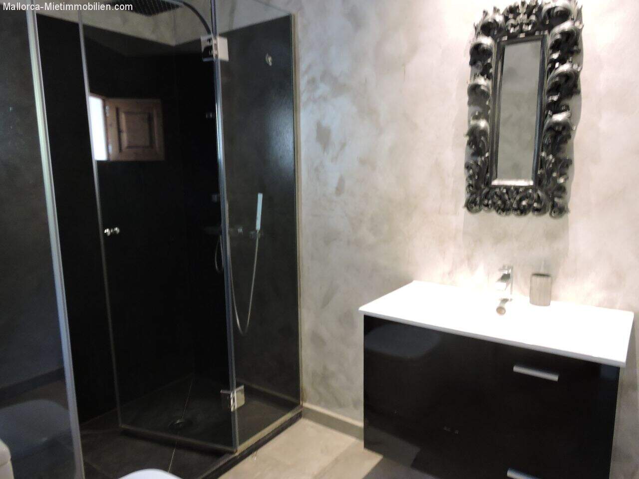 The finca was designed to be very spacious and open. The post-modern, high-quality kitchen has been skillfully integrated into the living space. The predominant colors are grey, silver and white. 2 of the 3 bedrooms are en suite. The separate bathroom is equipped with a whirlpool bath and shower. An extra room of approx. 20m² can be used as a fitness area (equipment available), office or for other purposes.