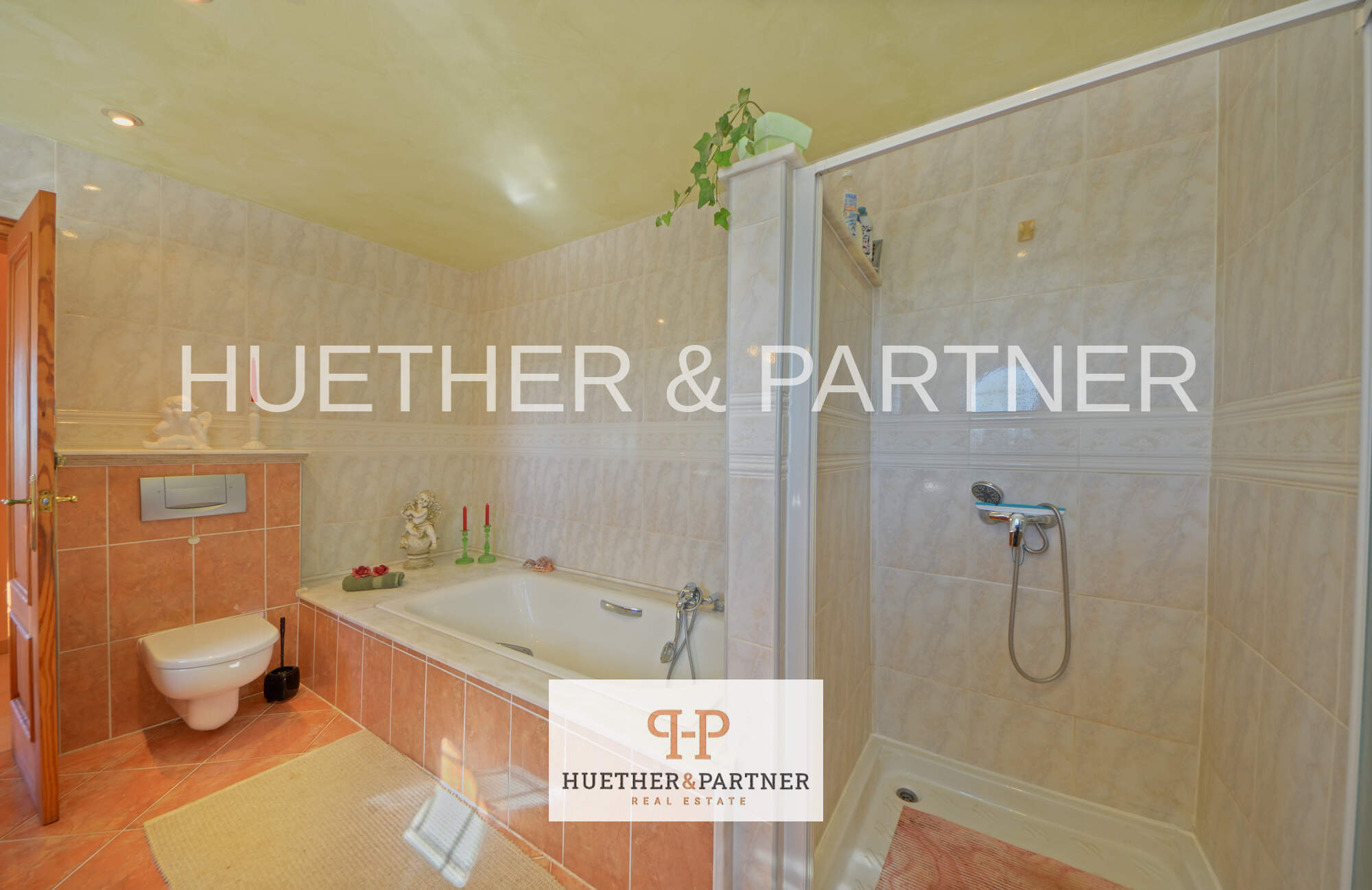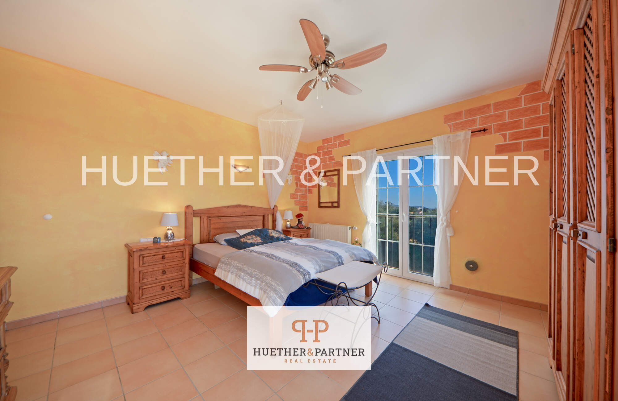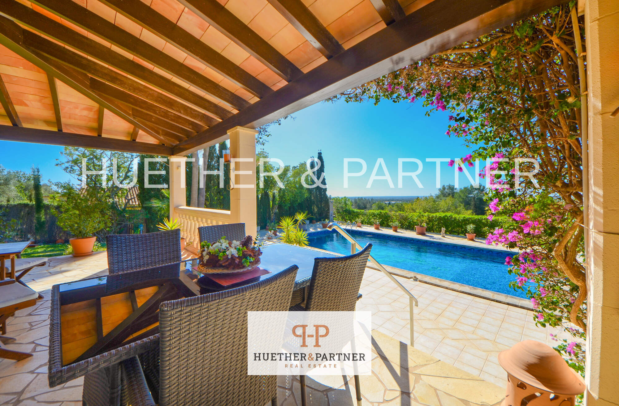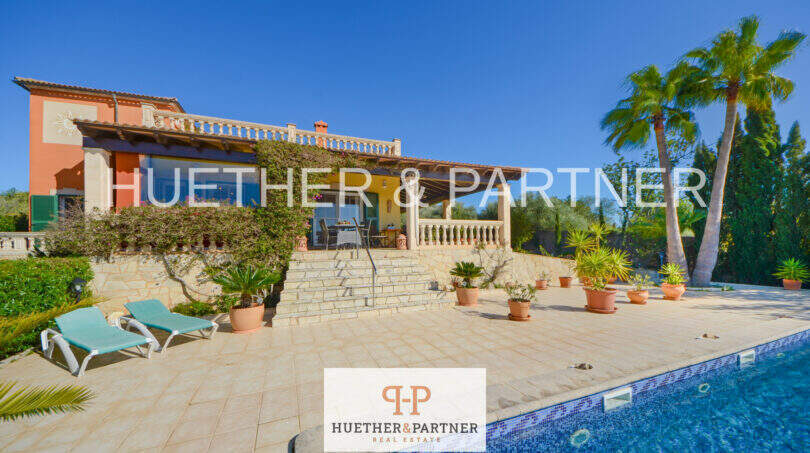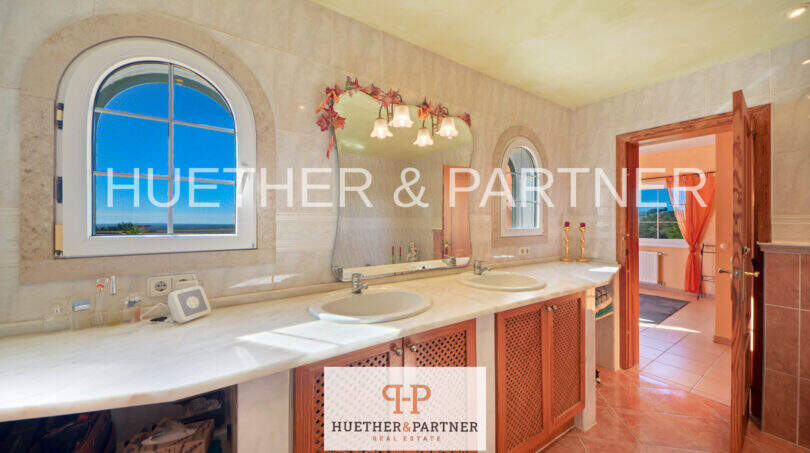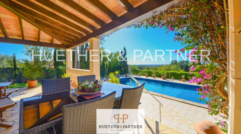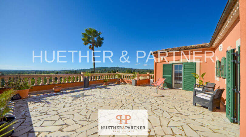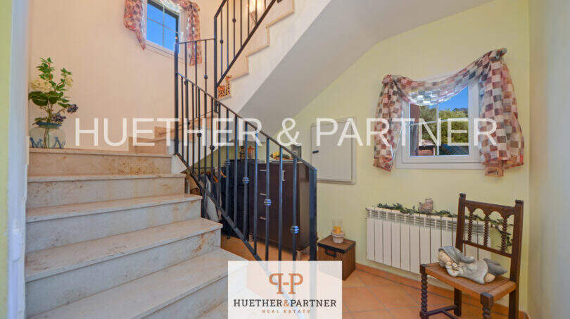 Die Finca überzeugt durch ihre klassische Architektur mit warmen Farben, traditionellen Elementen und großzügigen Fensterflächen, die viel Licht in die Räume lassen und den Blick auf Garten und Landschaft eröffnen. Im Obergeschoss erwartet Sie eine attraktive Dachterrasse mit herrlichem Weitblick zum Meer – ideal für entspannte Stunden bei Sonnenuntergang.