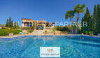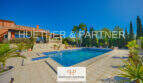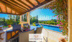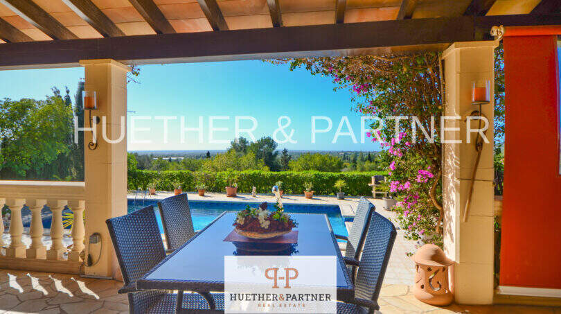 Der Außenbereich begeistert mit einem weitläufigen, sonnigen Poolbereich, der von Palmen, gepflegten Terrassenflächen und liebevoll angelegten Gärten umrahmt wird. Hier genießen Sie den mediterranen Lebensstil in seiner schönsten Form – ob beim Entspannen auf den großzügigen Sonnenflächen oder beim geselligen Beisammensein mit Familie und Freunden. Die überdachte, unterkellerte Terrasse direkt am House schafft einen fließenden Übergang zwischen Innen- und Außenbereich und bietet auch an warmen Sommerabenden angenehmen Schatten.