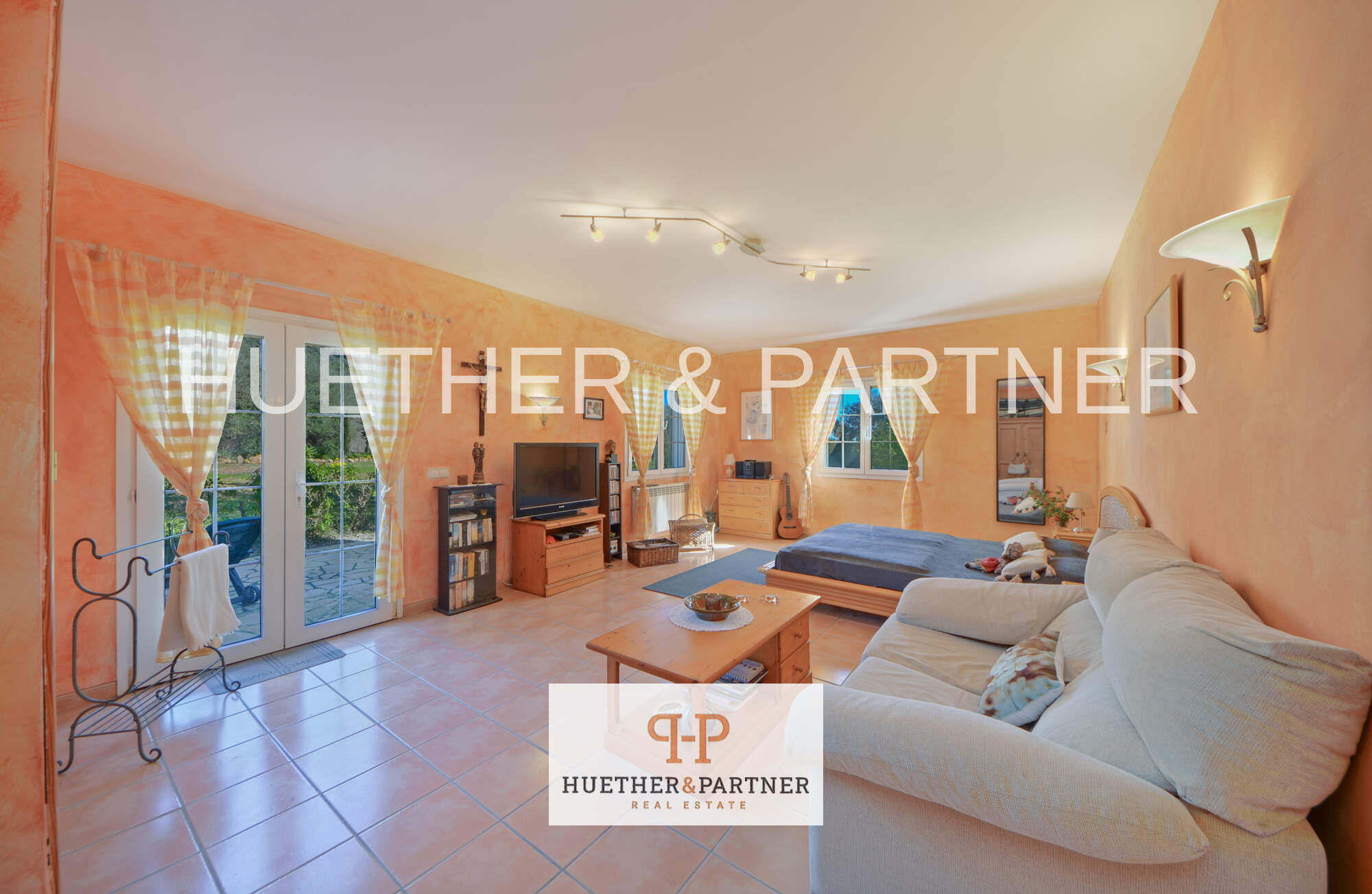 Das Haus ist in zwei Etagen aufgeteilt und verfügt über drei Schlafzimmer inkl. einem Gästezimmer und zwei Bäder, jeweils mit einer Dusche und das andere Wanne/Dusche. Das geräumige Wohn-Esszimmer hat einen Kamin. Die Finca verfügt über eine Öl-Zentralheizung, Stromanschluss, Warm/Kalt-Geräte und hat eine Zisterne mit 30.000 Liter Wasser.