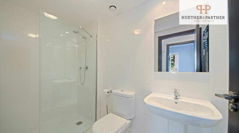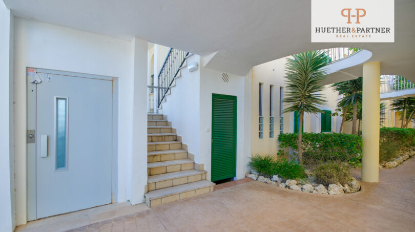 In einer ruhigen Wohngegend gelegen, profitiert die Immobilie von einem großzügigen Gemeinschaftsgarten mit einem 400m² großen Pool, einem Relax-Bereich sowie einer Sauna und einem Whirlpool. Das alles befindet sich auf einem weitläufigen 4.000m² großen Property, das Ruhe und Erholung bietet. Das moderne Gebäude, das nur wenige Wohneinheiten umfasst, besticht durch mediterrane Bepflanzung und harmonische Architektur. Die Wohnung kann über die Außentreppe oder einen Aufzug erreicht werden.