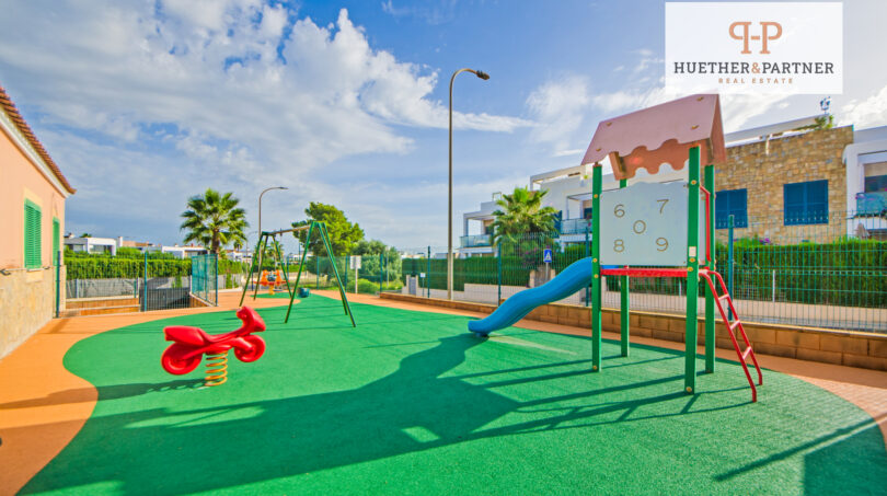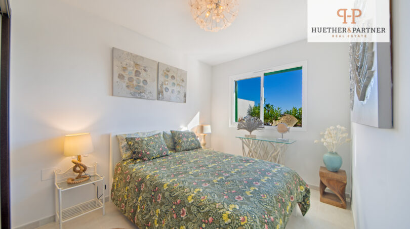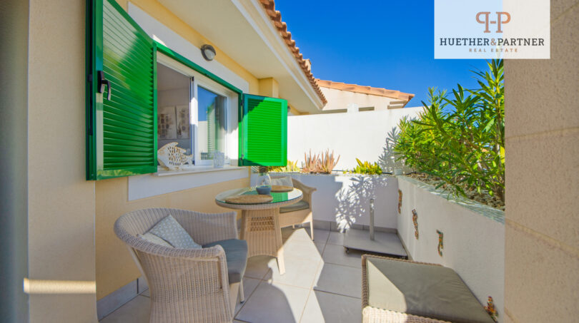 Für zusätzlichen Komfort sorgt die pflegeleichte Gestaltung der Außenbereiche, bei der die Bewässerung automatisch über eine Zeitschaltuhr erfolgt. Die Entfernung zum nächsten Strand beträgt etwa 900m, sodass das Meer jederzeit in Reichweite ist.