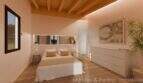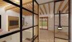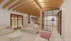 Der große, helle Wohn- und Essbereich mit modernem Kamin und Zugang zur überdachten Terrasse sowie zur Poolterrasse (30m² Pool) lädt zum gemütlichen Verweilen ein. Die Raumhöhe mit bodentiefen Fenstern sorgt für ein lichtdurchflutetes Konzept. Die an den Essbereich anschließende, modern ausgestattete Küche mit Kochinsel lässt keine Wünsche offen. Ein Gäste-WC steht ebenfalls zur Verfügung. Der Master-Schlafbereich mit Bad en Suite und Ankleidebereich sowie Zugang zum Außenbereich, zwei weitere Schlafzimmer und ein Vollbad machen diese Finca ideal für die ganze Familie.