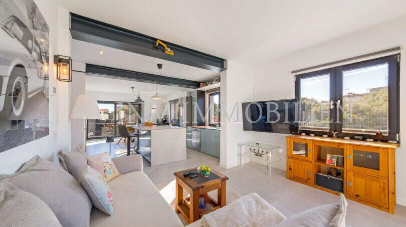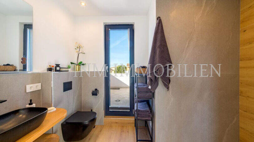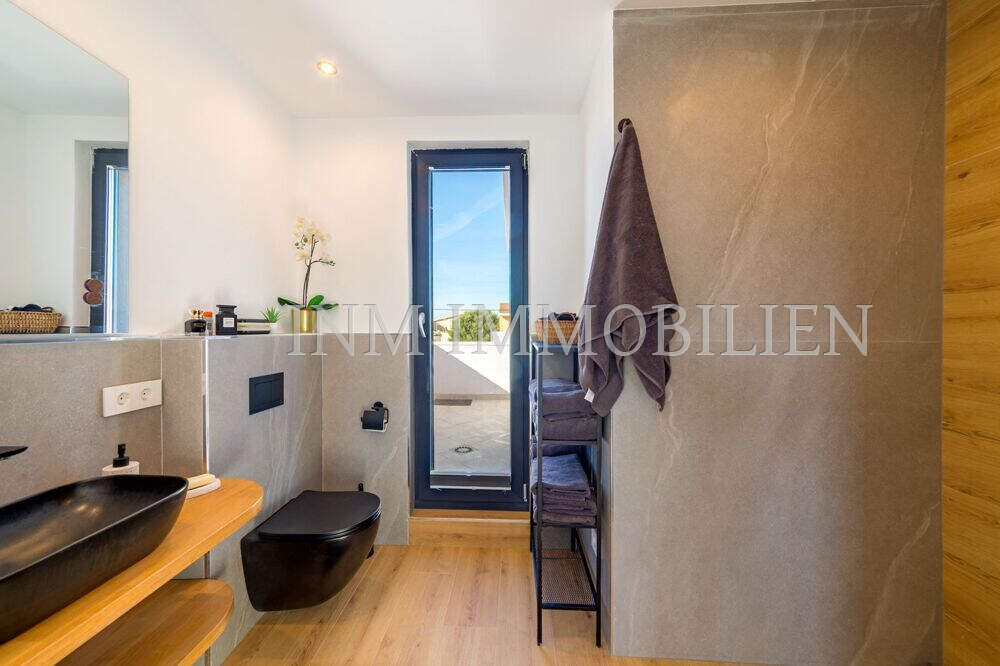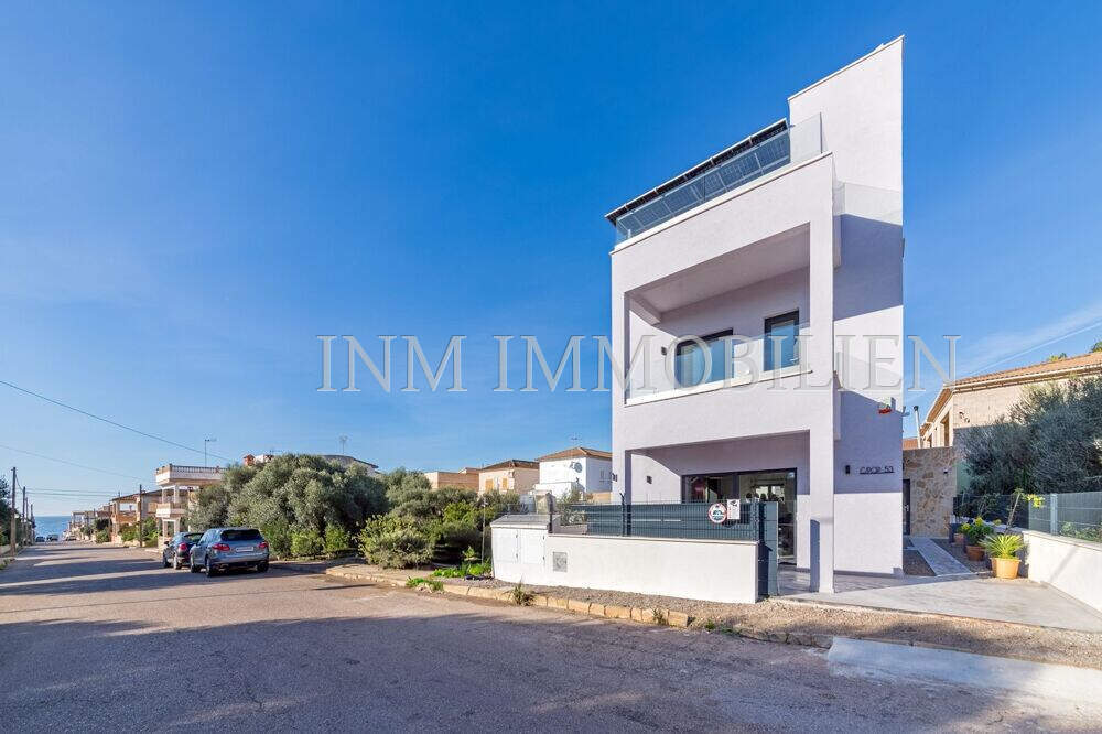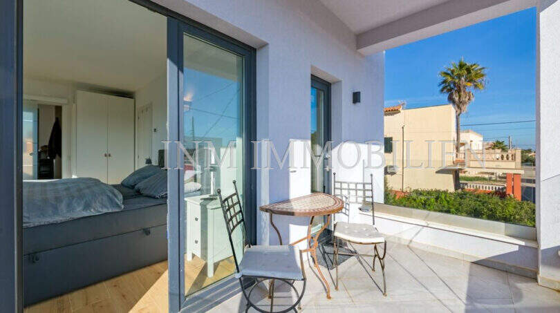 House kaufen in Sa Ràpita mit Gästehaus und Meerblick: in ruhiger Wohnlage von Sa Ràpita, nur wenige Meter vom Meer und nahe des Yachthafens, steht diese elegante Neubauvilla. Die Immobilie überzeugt durch hohe Bauqualität, modernes Design und lichtdurchflutete Räume. Helle Farbtöne, Anthrazit und natürliche Holzelemente schaffen ein stilvolles und einladendes Wohnambiente.