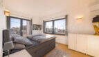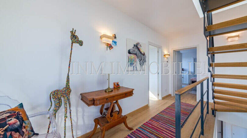 Im Obergeschoss verfügen die beiden Hauptschlafzimmer über Bad en suite und direkten Zugang zu Terrassen mit Meerblick. Die private Dachterrasse eröffnet spektakuläre Panoramablicke auf Cabrera, den Strand Es Trenc und die umliegende Landschaft.