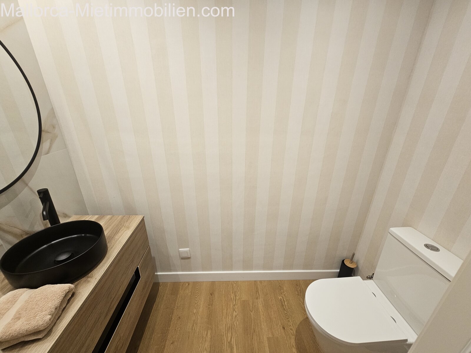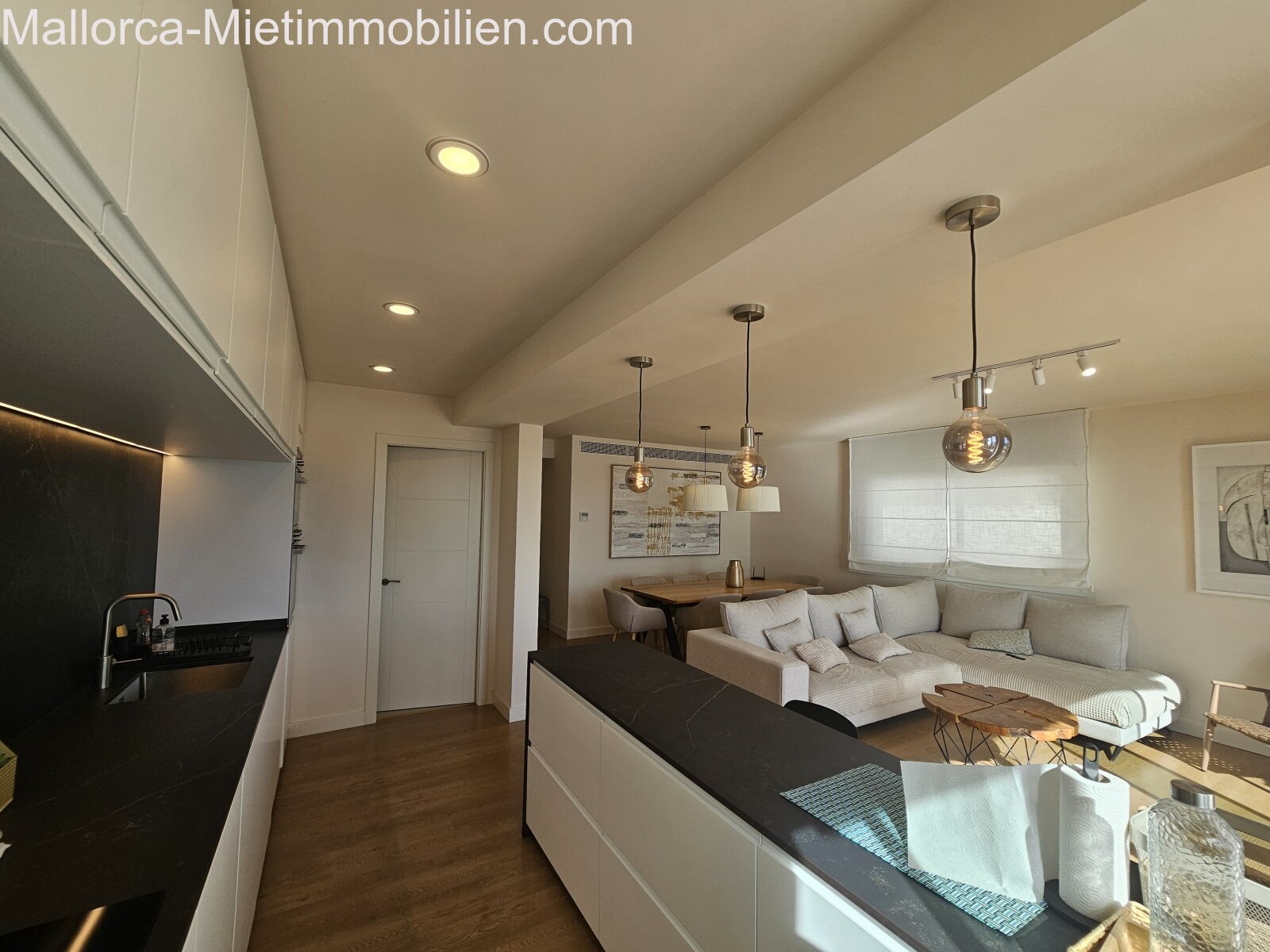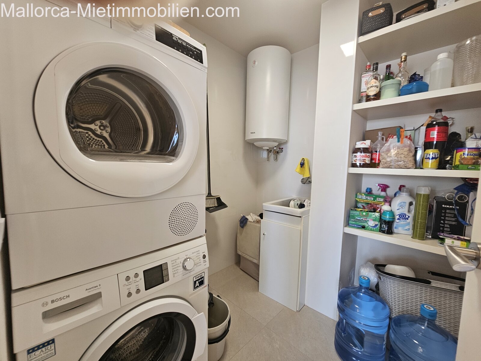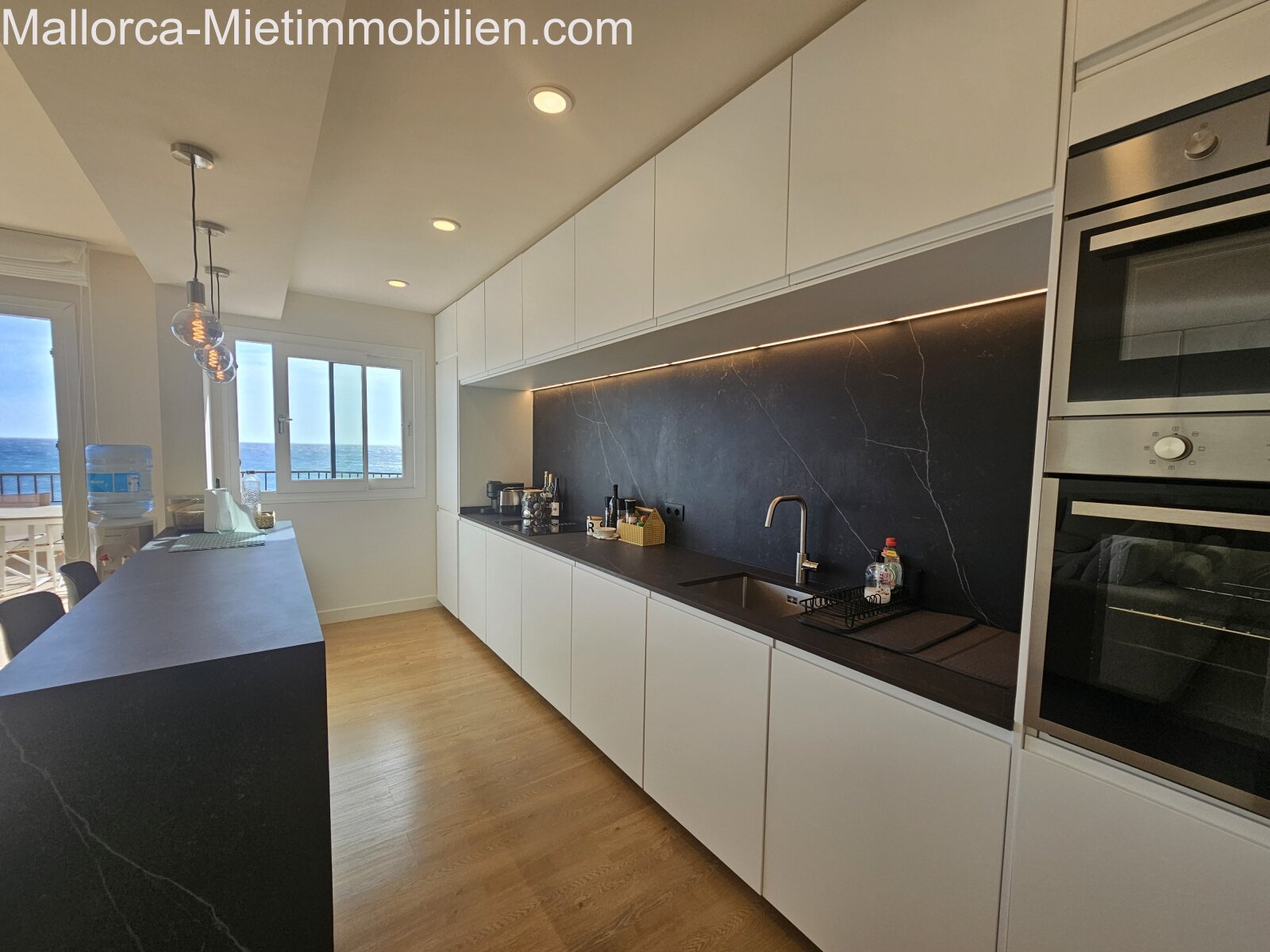 Apartment zu mieten in S’Illot mit Terrasse: unglaublich stylische Wohlfühloase in erster Linie bei S’Illot – nur 40m vom Meer entfernt, ideal zum Schwimmen, der Strand liegt etwa 60m entfernt. Die Mietwohnung bietet eine umlaufende Terrasse und eine private Dachterrasse samt Abstellhaus. Elektrisch ein- und ausfahrbare Überdachung sowie BBQ sind vorhanden.