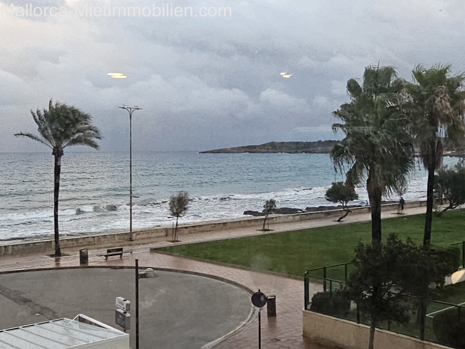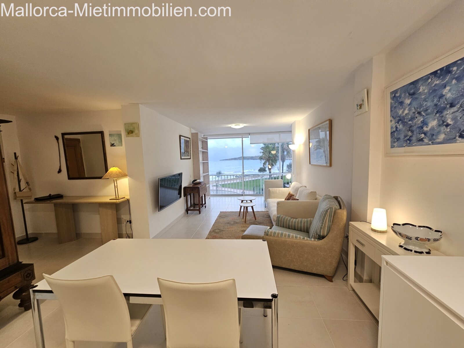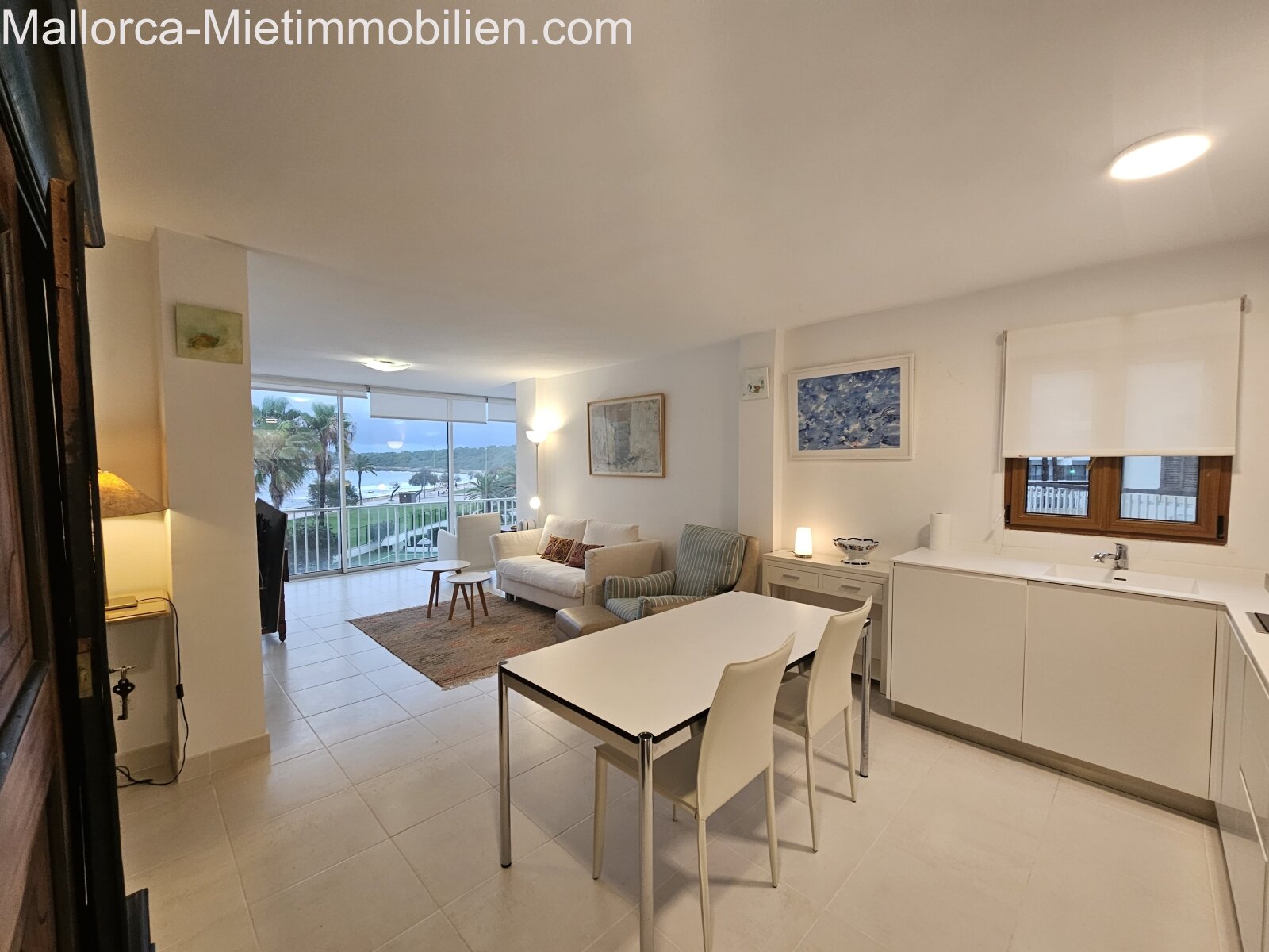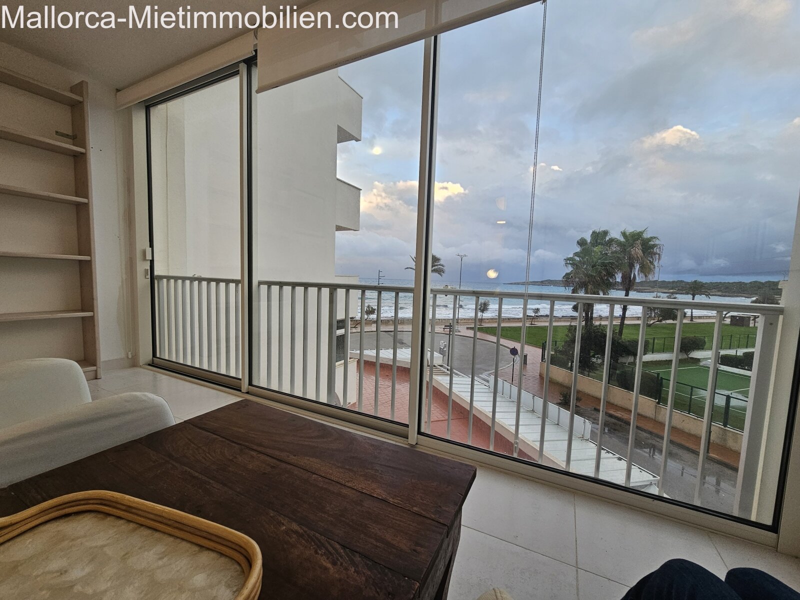 Apartment zu mieten in Cala Millor mit Balkon und Fahrstuhl: zauberhaftes, modernes Apartment in der ersten Linie – 20m Strandzugang. Offener Schnitt, wobei der Balkon direkt zum Wohnraum angegliedert und voll verglast wurde und bis auf ein Glaselement komplett aufzuschieben geht.