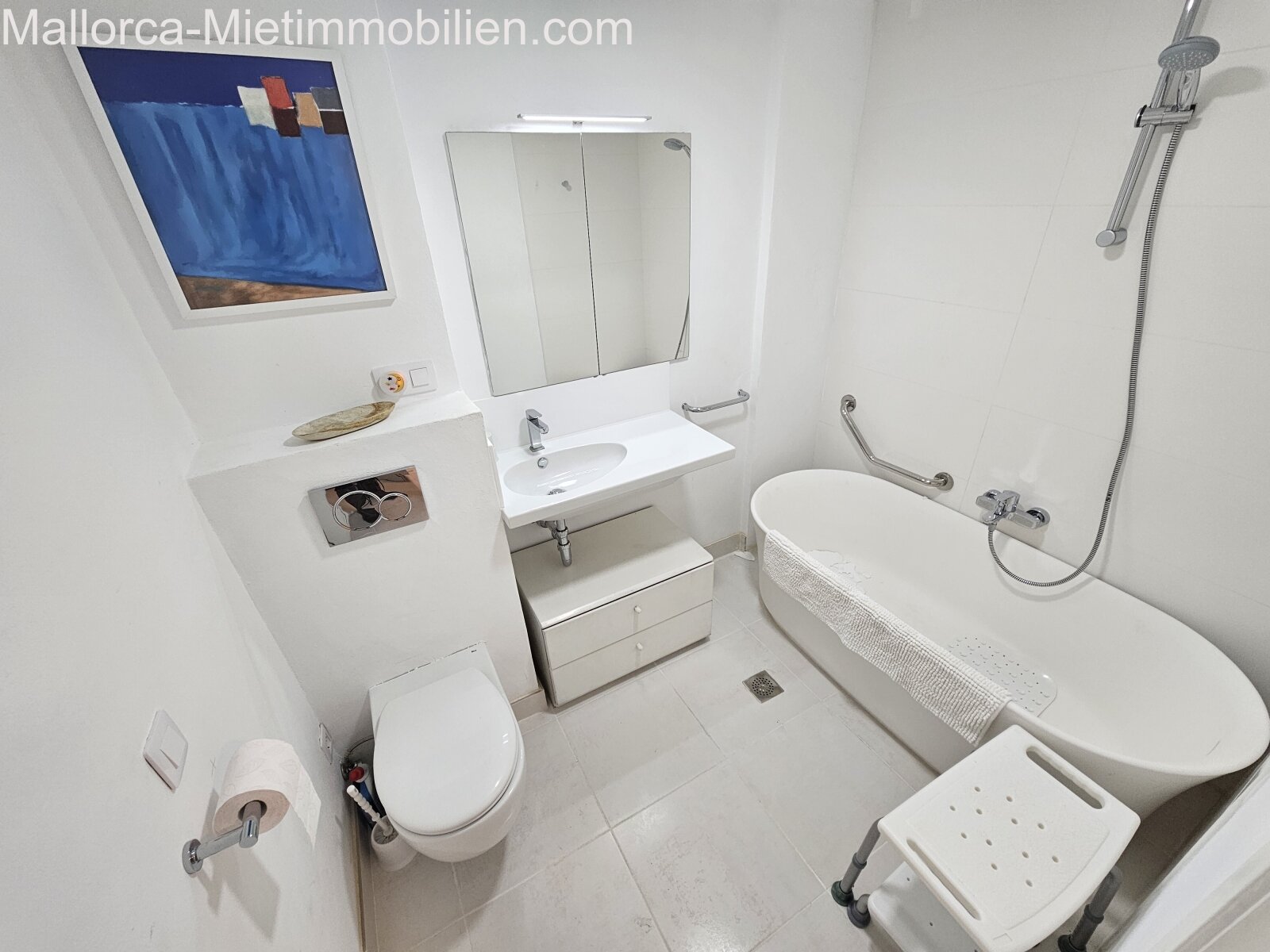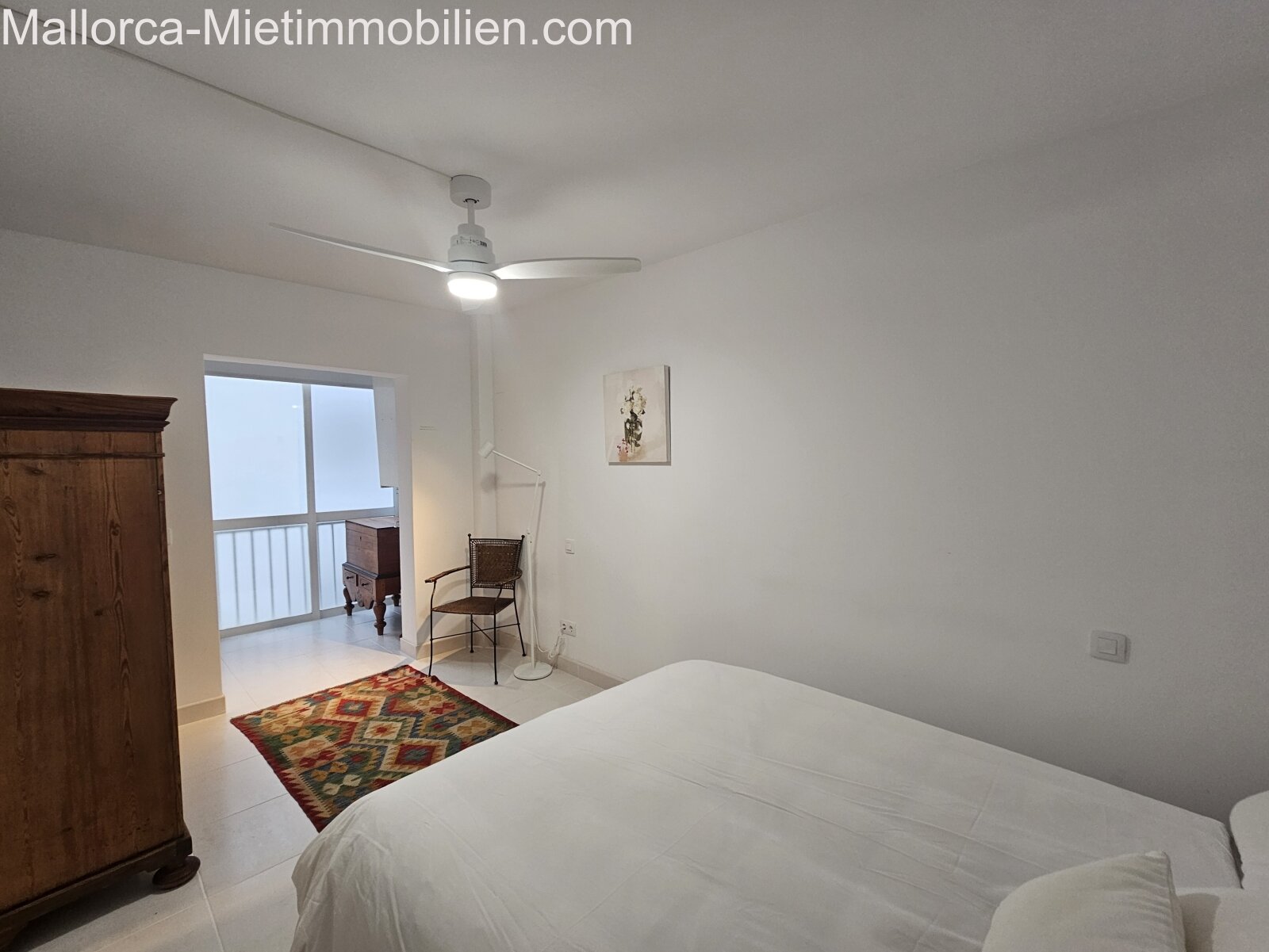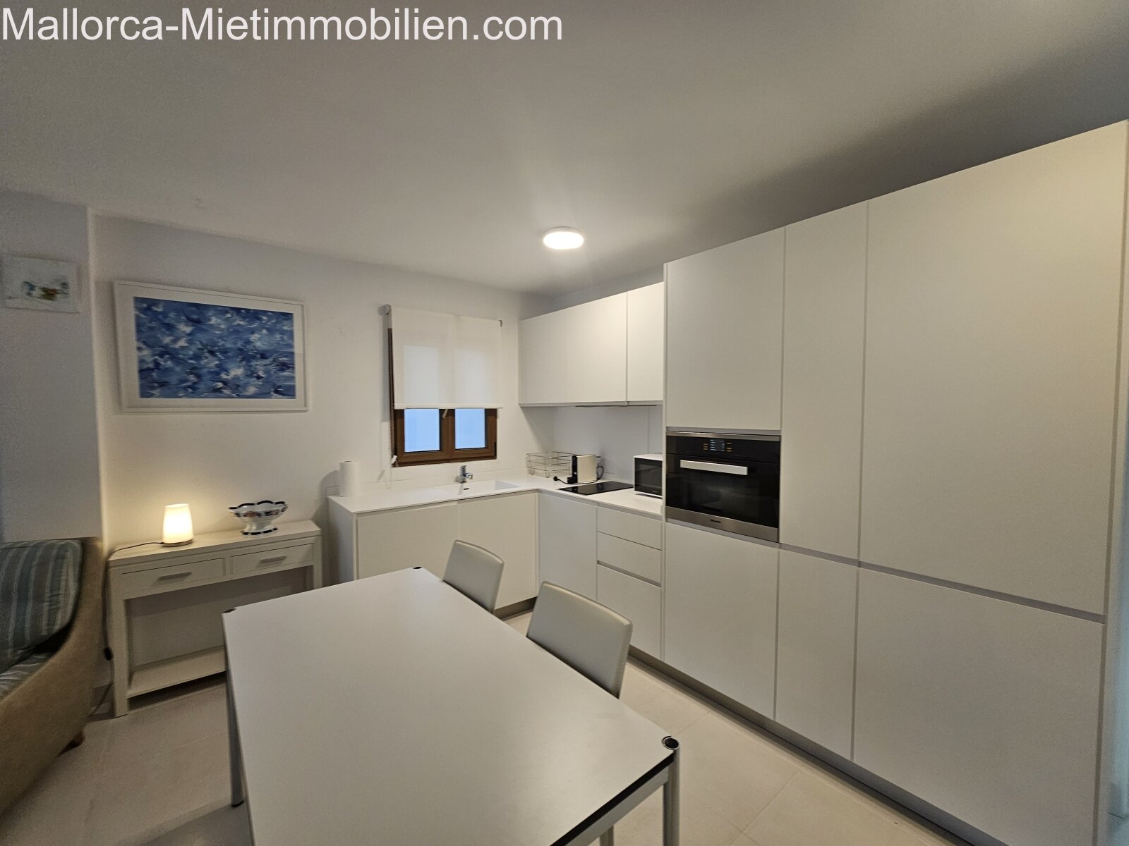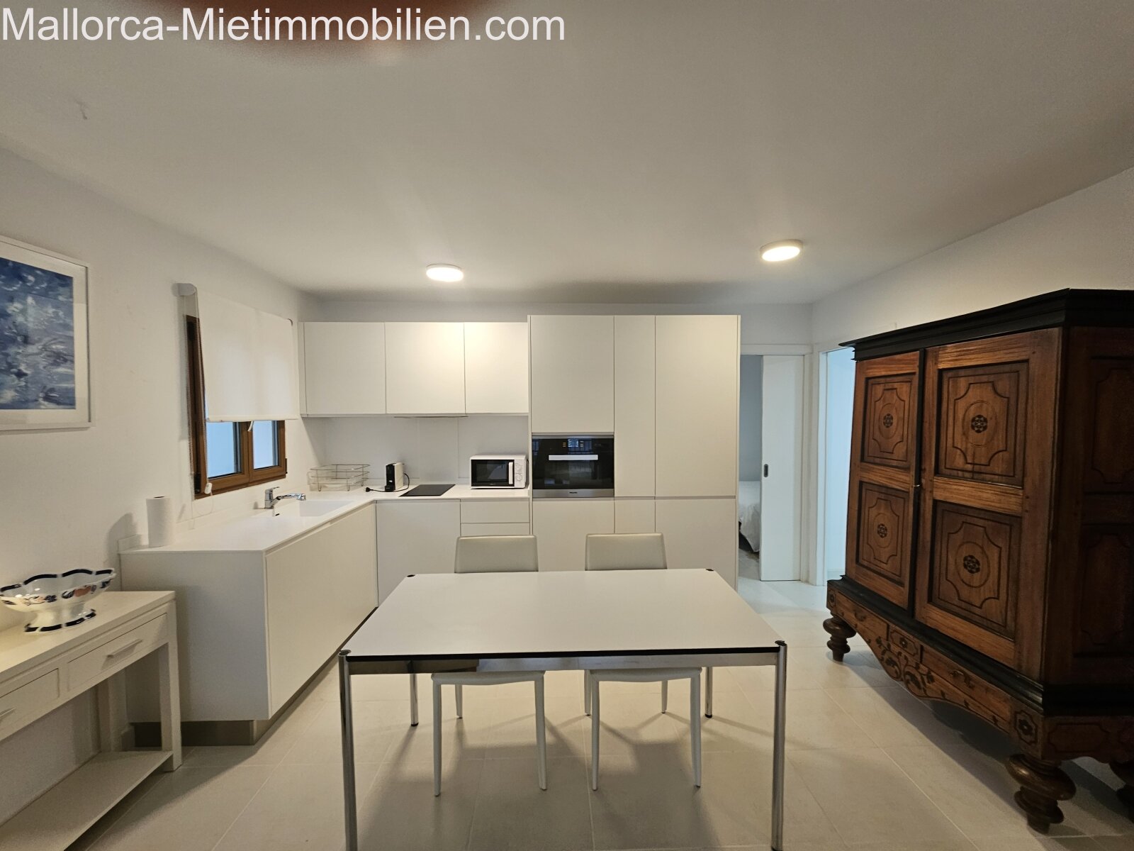 Apartment zu mieten in Cala Millor mit Balkon und Fahrstuhl: zauberhaftes, modernes Apartment in der ersten Linie – 20m Strandzugang. Offener Schnitt, wobei der Balkon direkt zum Wohnraum angegliedert und voll verglast wurde und bis auf ein Glaselement komplett aufzuschieben geht.