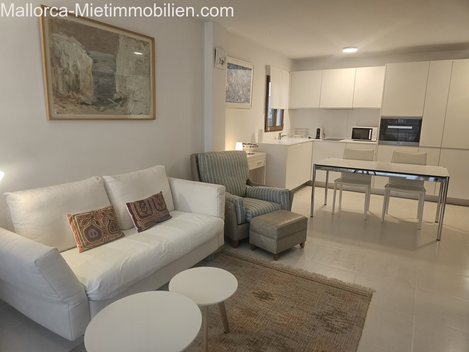 Voll- oder teilmöbliert, Küche mit deutschen Geräten, Kühlgefrierkombi, Waschmaschine mit Trocknerfunktion, Induktionsherd (2 Kochstellen), Mikrowelle, Bettsofa im Wohnzimmer, Warmwasserboiler, Fahrstuhl, überdachter Stellplatz.
