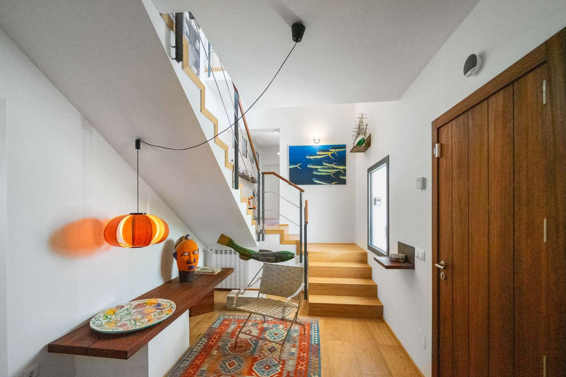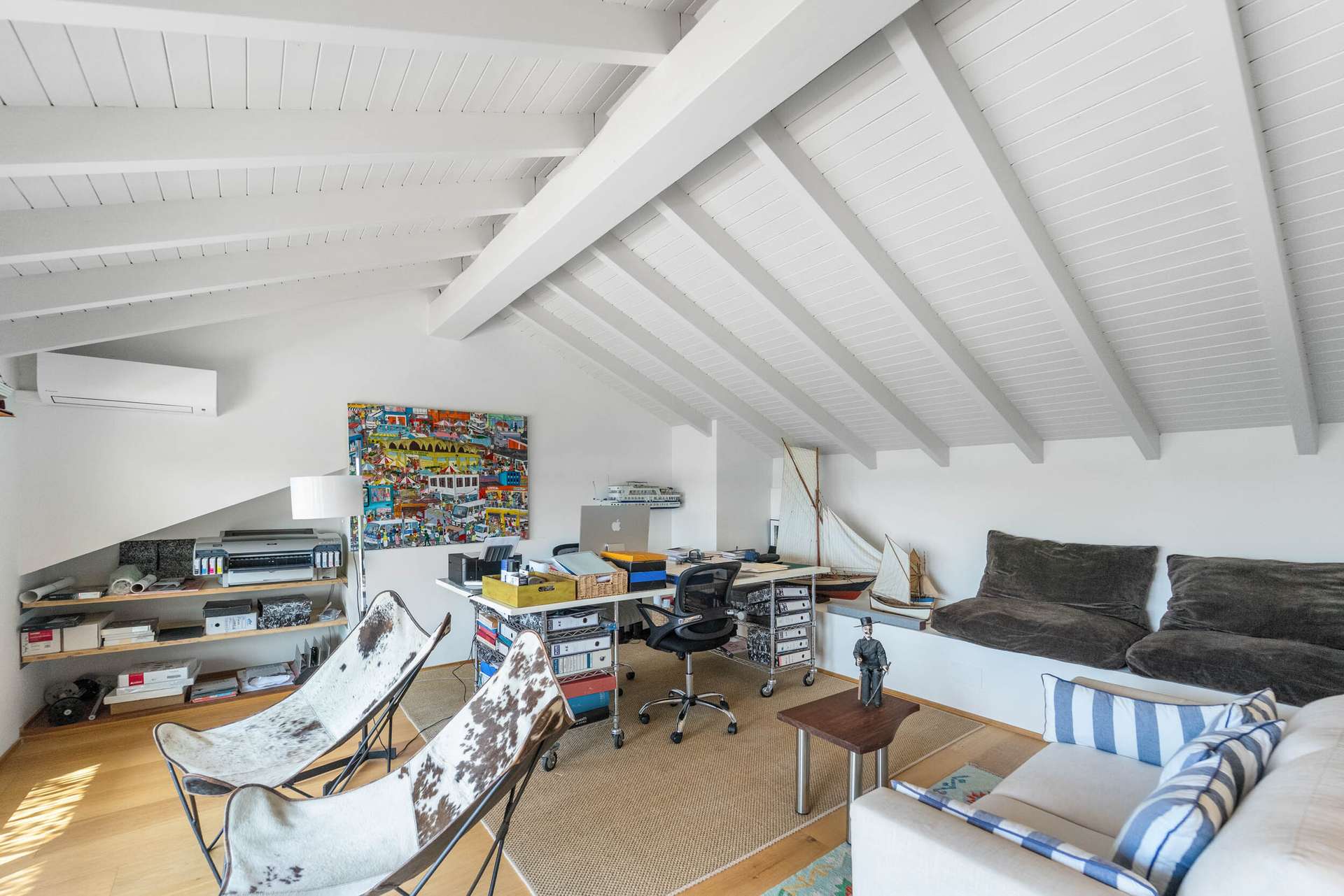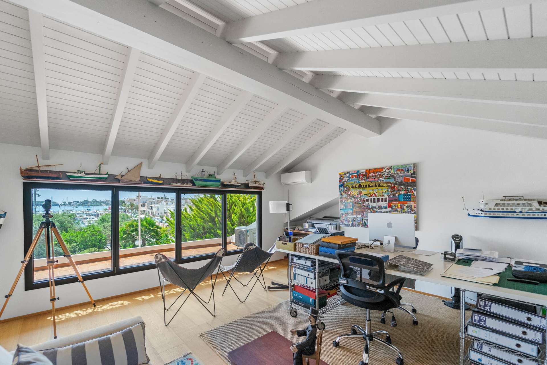 Vom zweiten Stock aus eröffnet sich ein spektakulärer Panoramablick über den Hafen, der jeden Sonnenaufgang und Sonnenuntergang zu einem besonderen Erlebnis macht. Das House verfügt über sechs geräumige Schlafzimmer, von denen einige direkten Zugang zu Terrassen mit Sea view haben, sowie über drei voll ausgestattete Badezimmer und ein Gäste-WC, allesamt hochwertig ausgestattet. Eines der Schlafzimmer verfügt über ein eigenes Bad, während das oberste Stockwerk derzeit als Atelier genutzt wird und sich durch seinen offenen Blick auf den Hafen und seine Vielseitigkeit als Büro, Kreativraum oder zusätzliches Schlafzimmer auszeichnet.