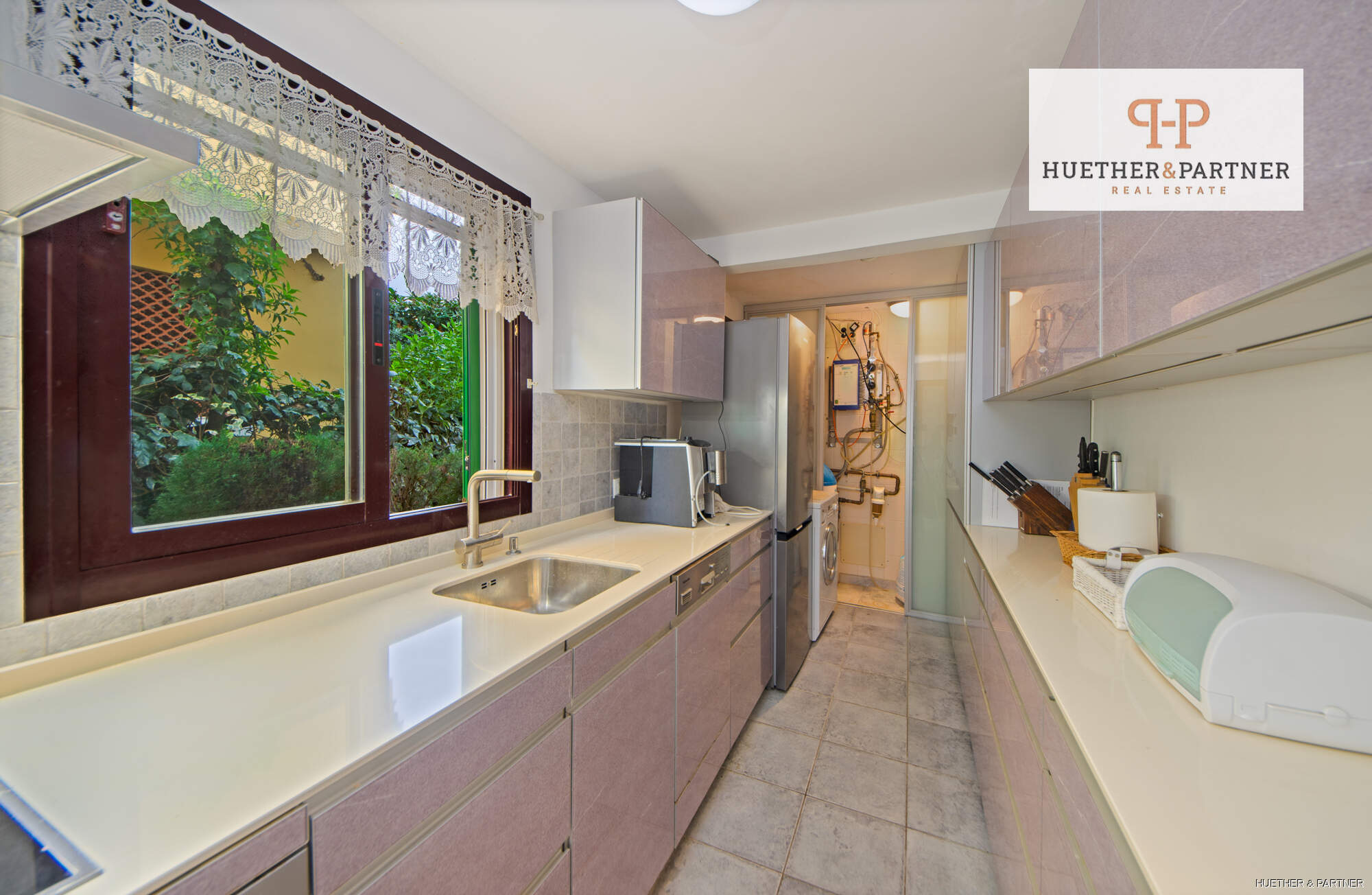 La planta baja tiene techos altos y un ambiente abierto y luminoso. Aquí se encuentran el salón, la moderna cocina, un dormitorio y un cuarto de ducha. El salón y los cuartos de baño están equipados con calefacción por suelo radiante. En la planta superior hay otros dos dormitorios y un moderno cuarto de ducha. Todos los salones y dormitorios tienen baldosas nuevas. La terraza ampliada y recién embaldosada con pérgola de madera invita a relajarse. La cocina está equipada con electrodomésticos Miele de alta calidad. Las mosquiteras de todas las ventanas y puertas de balcones y patios proporcionan un confort adicional.