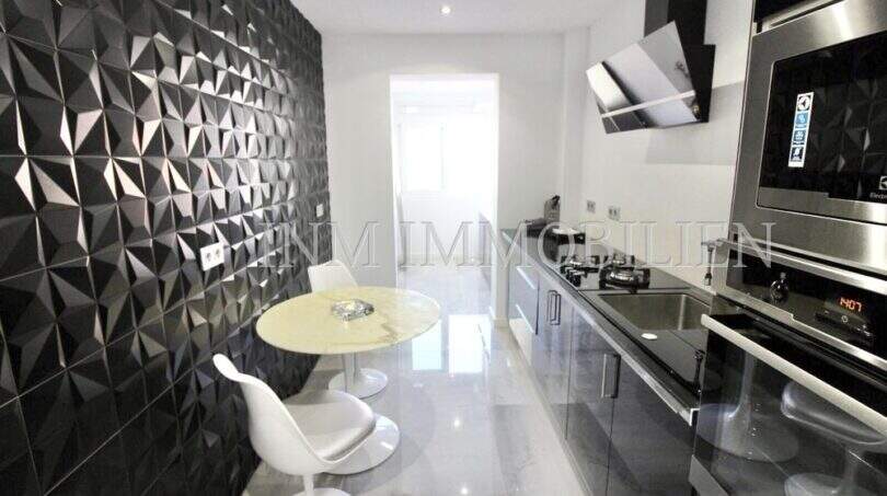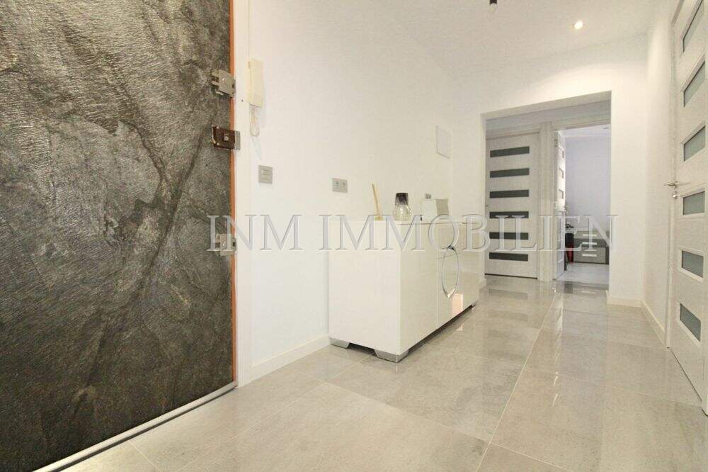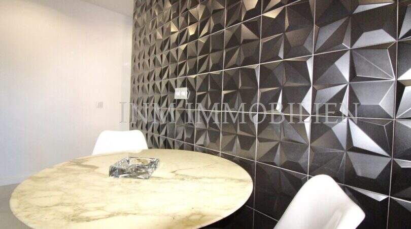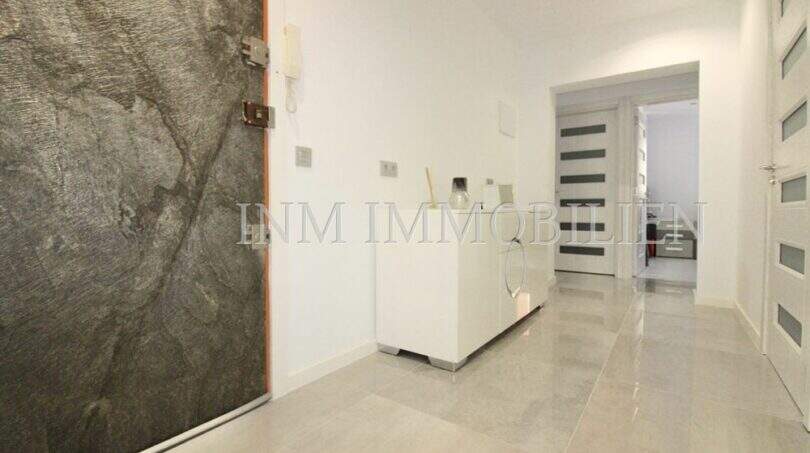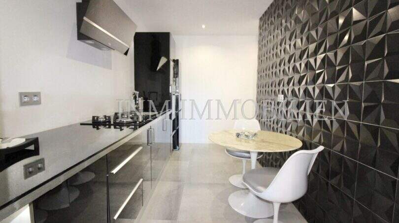 Das stilvolle Wohn- und Esszimmer ist mit einer modernen, offenen Designerküche ausgestattet, die den Raum perfekt ergänzt und sich ideal für gesellige Abende eignet. Die Wohnung verfügt über drei geräumige Schlafzimmer und zwei elegante Badezimmer, die höchsten Ansprüchen gerecht werden. Zu den hochwertigen Ausstattungsmerkmalen der Wohnung gehören Doppelglasfenster, automatische Jalousien und eine Klimaanlage, die sowohl warme als auch kalte Luft reguliert, um das ganze Jahr über optimalen Komfort zu gewährleisten.