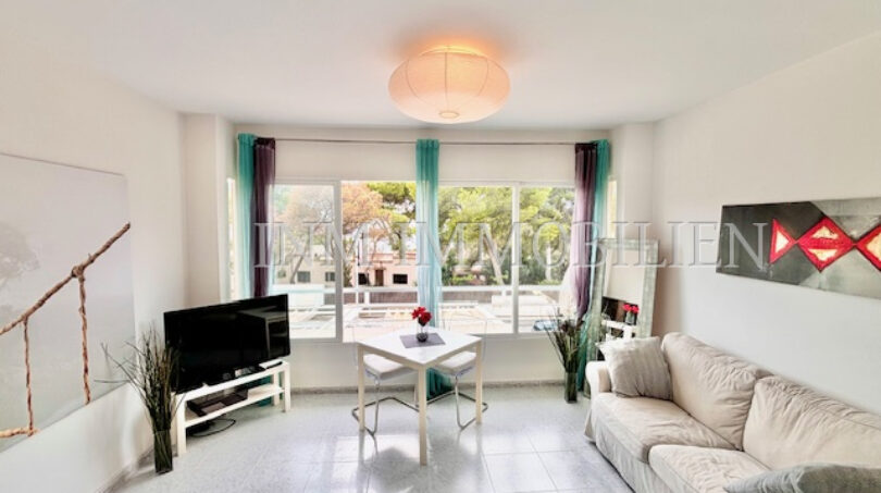 Estudio Plano zu kaufen in Camp de Mar mit Pool: Dieses liebevoll gestaltete Studio-Apartment befindet sich in der beliebten Küstenregion Camp de Mar, nur etwa 100m vom Meer entfernt. Die ruhige und dennoch zentrale Lage bietet kurze Wege zum Strand, zu Restaurants und Geschäften – ideal für alle, die das mediterrane Lebensgefühl genießen möchten.