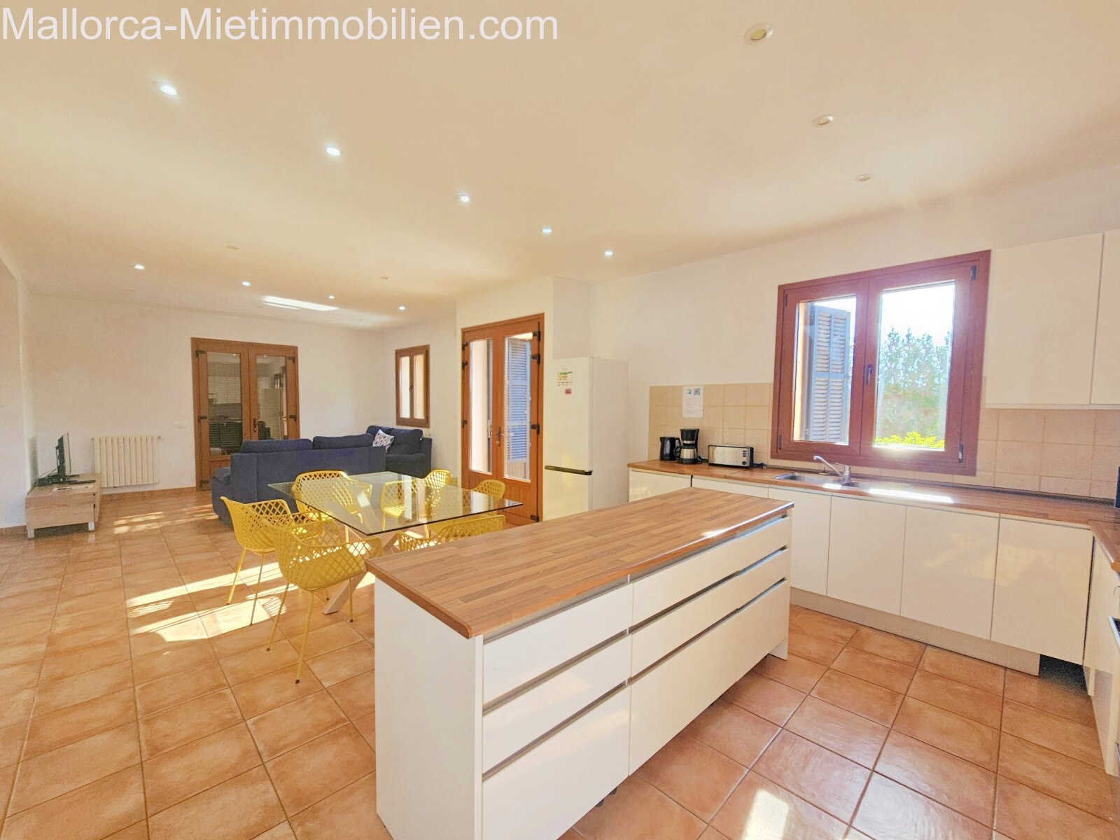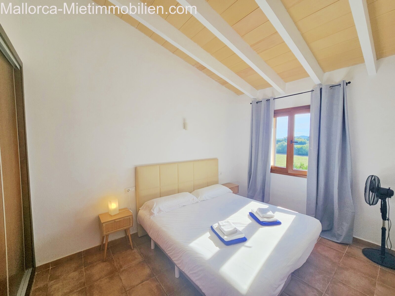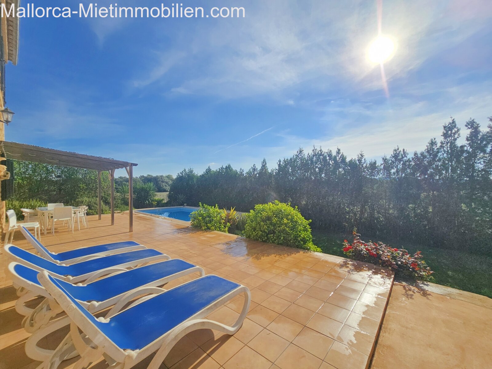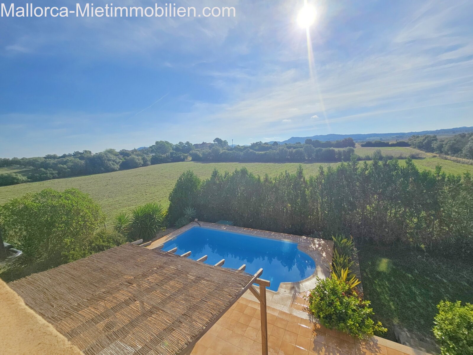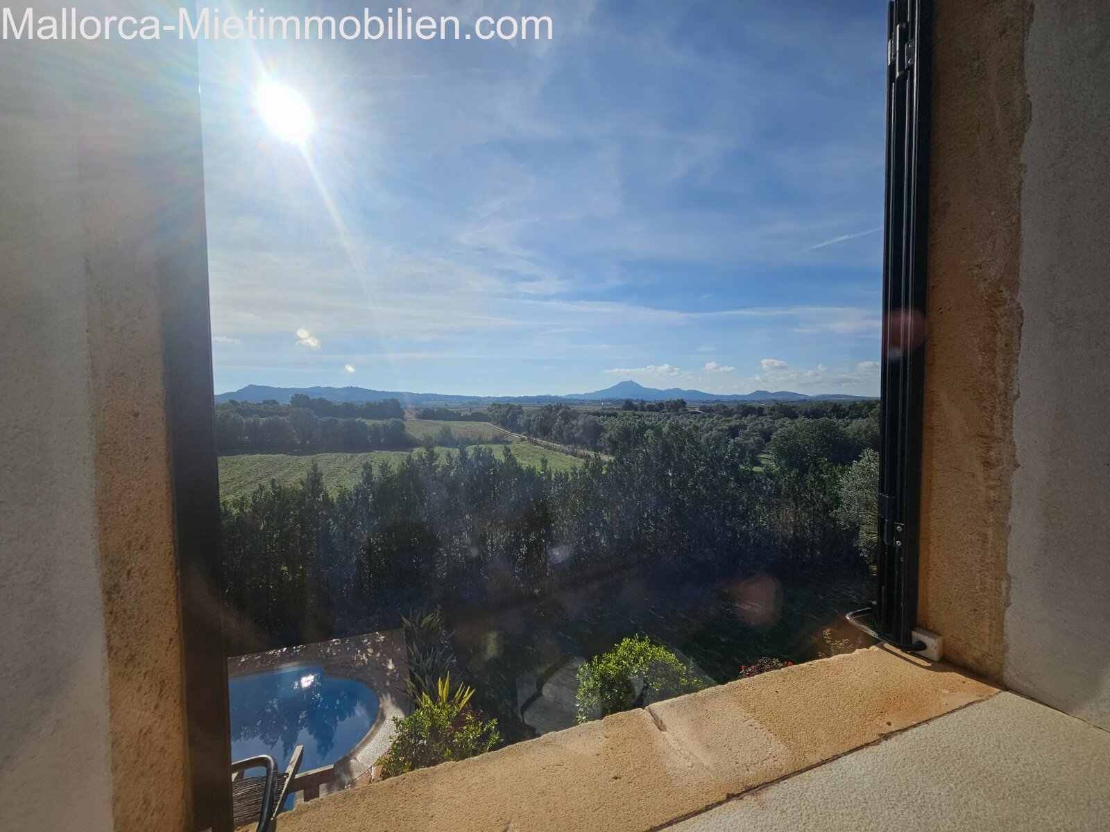 Neubaufinca zu mieten bei Manacor, ruhig und nachhaltig: eingezäunt und mit elektrischem Tor, leicht erhöht mit zauberhaftem Weitblick über die Felder, Landschaft bis zu den Bergen.
