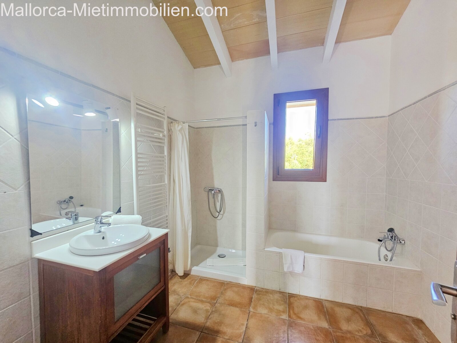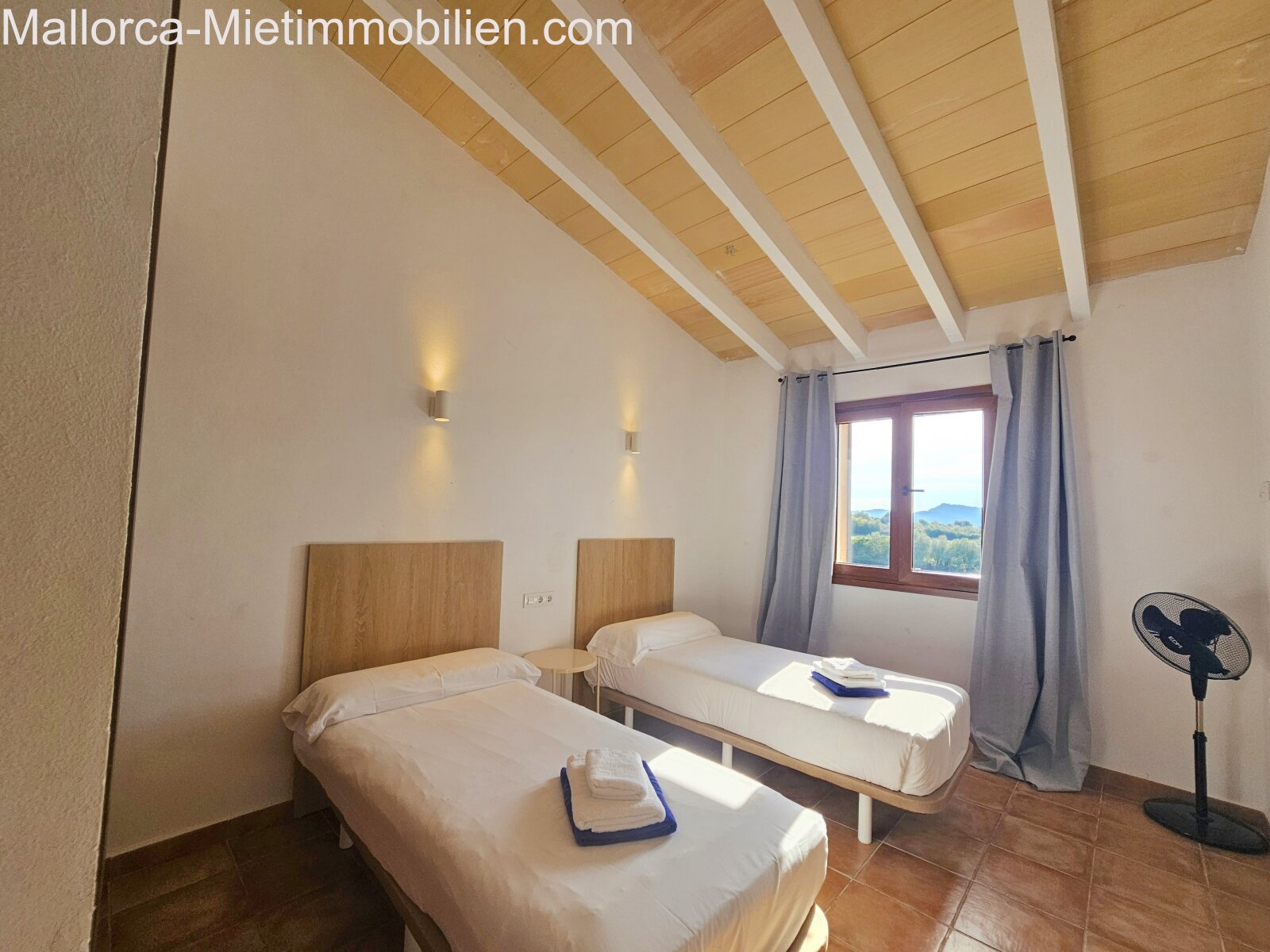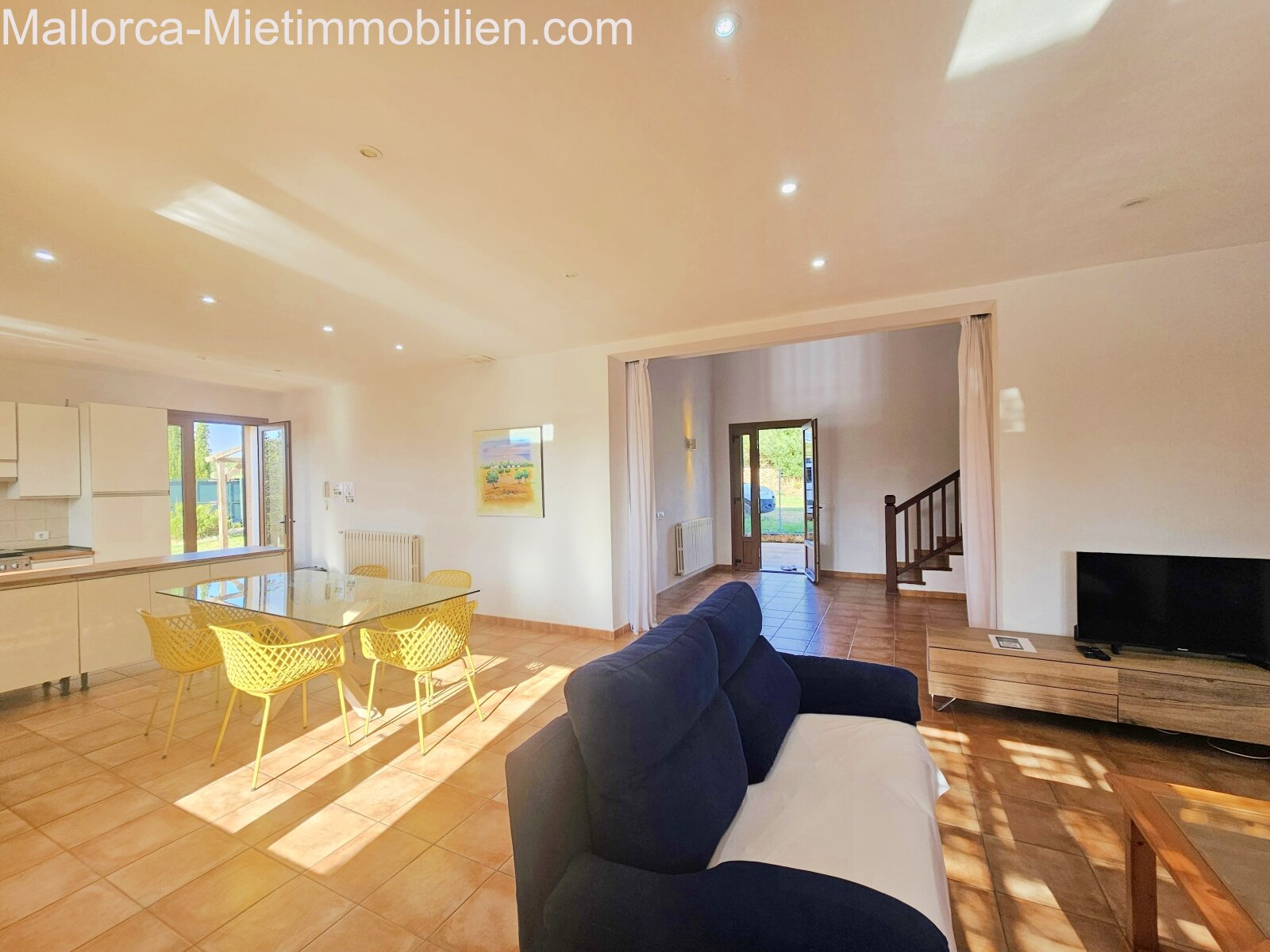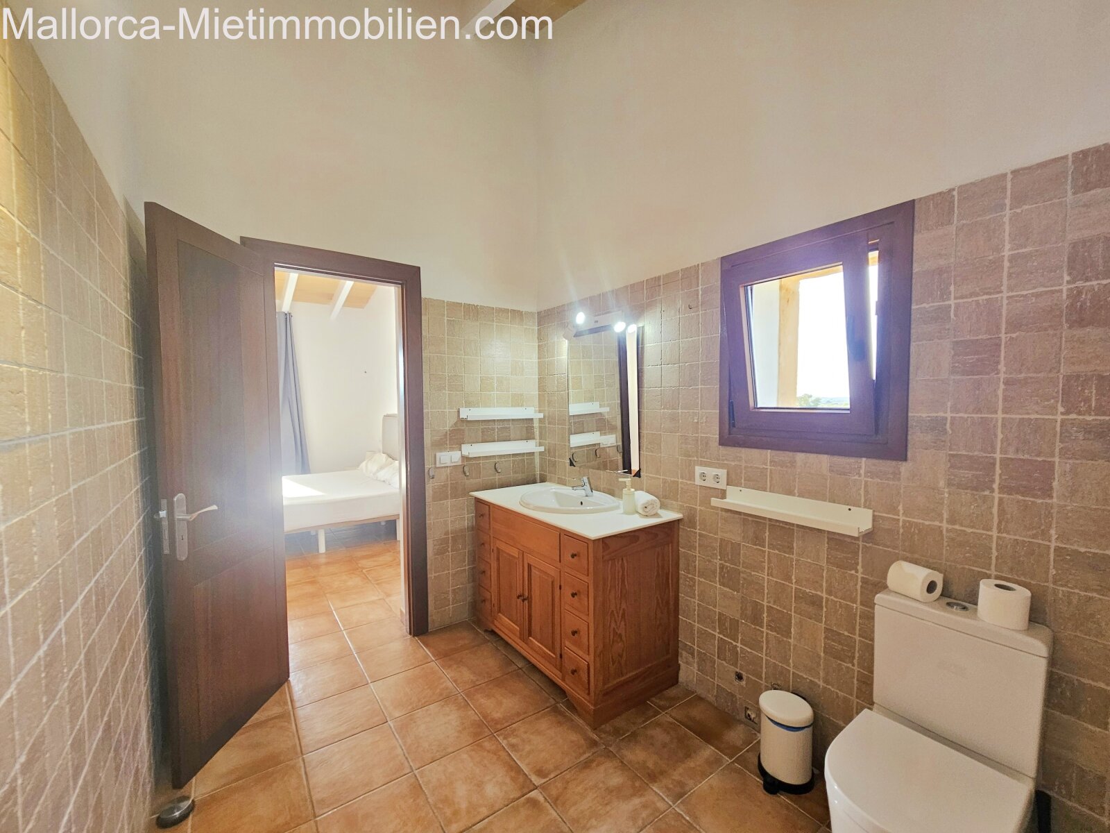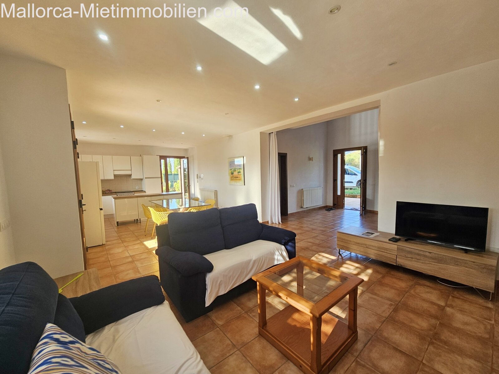 Neubaufinca zu mieten bei Manacor, ruhig und nachhaltig: eingezäunt und mit elektrischem Tor, leicht erhöht mit zauberhaftem Weitblick über die Felder, Landschaft bis zu den Bergen.