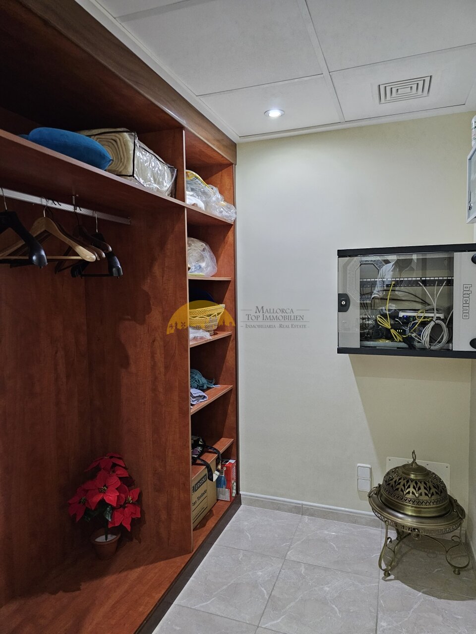 Ein wirklich seltenes Angebot: Neuwertiges Stadthaus in Inca, das keine Wünsche offenlässt. Auf zwei Wohnebenen befinden sich fünf Schlafzimmer und sechs Bäder. Alle Zimmer sind hochwertig ausgestattet, hell und freundlich. Technisch und optisch ist das Casa perfekt. Ein hausinterner Fahrstuhl ermöglicht bequemen Zugang zu allen Etagen sowie zur Garage. Dort ist Platz für mindestens acht Fahrzeuge. Der beheizte Innenpool sorgt besonders im Winter für entspannte Stunden.