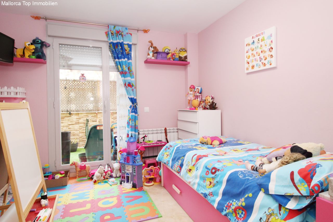 Sehr gepflegte Erdgeschosswohnung in einer reinen Wohnanlage in Coll d’en Rabassa, ca.100 m vom Strand in Cala Gamba entfernt. Vom zentralen Flur gelangt man in die jeweiligen Zimmer. Das Hauptschlafzimmer verfügt über ein Bad en Suite und Zugang zur Gartenterrasse. Die Kinderzimmer teilen sich ein weiteres Badezimmer, Dusche vorhanden, und verfügen ebenfalls über Zugang zur Terrasse. Vom Wohnzimmer und der Küche gibt es ebenfalls Zugang zur Terrasse. Das ca.70m² große Propiedad ist mit Kunstrasen bedeckt, zwei Markisen sorgen für angenehmen Schatten. Die moderne Einbauküche ist im Kaufpreis enthalten. Zur Plano gehören ein kleiner Kellerraum und ein Parkplatz. Eine weitere Terrasse im Eingangsbereich hat ca.25m².
