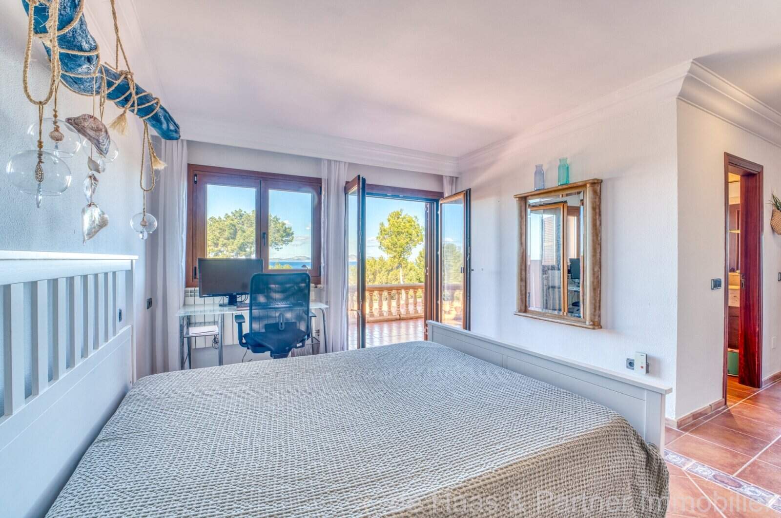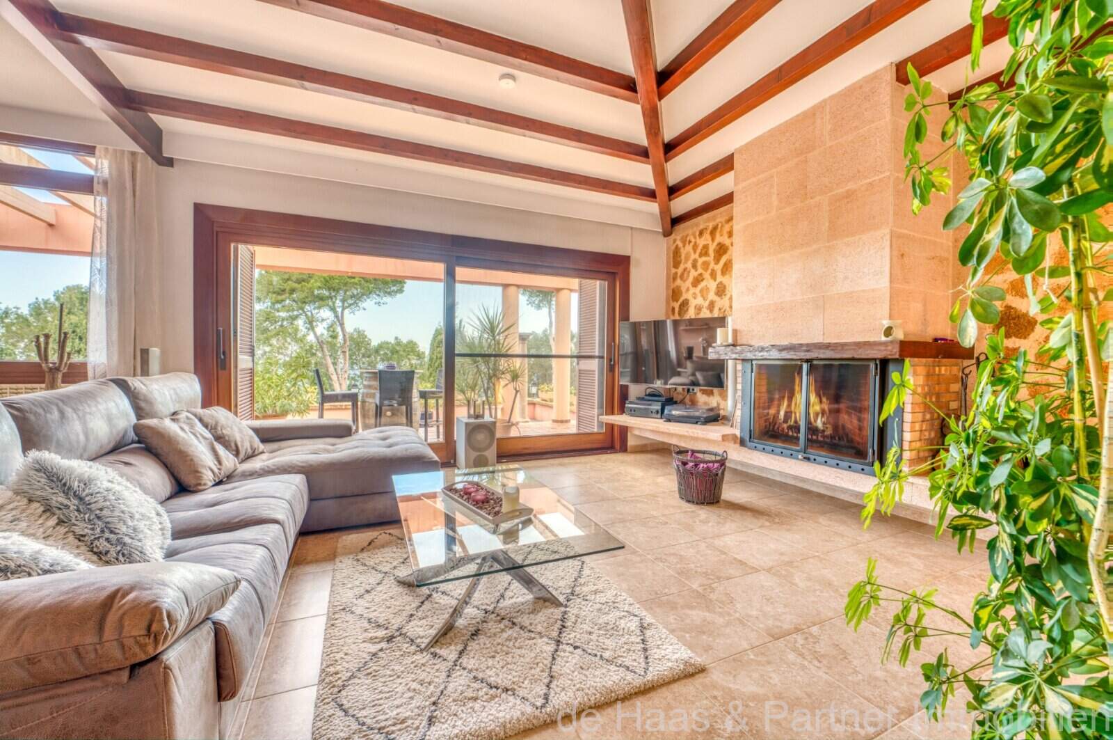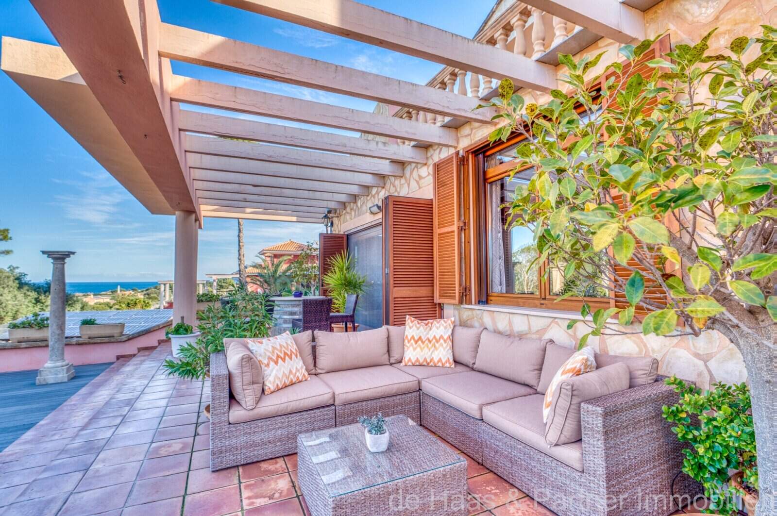Von den großzügigen Terrassenflächen rund ums Casa (ca. 190m²), von denen ca. 60m² überdacht sind, haben Sie einen spektakulären Panoramablick bis zum Meer und die Nordküste. Der BBQ-Bereich mit Außenküche am Pool bietet die Möglichkeit, mit Freunden gemütliche Abende zu verbringen. Der beheizbare Überlauf-Pool mit 50m² und ein extra Whirlpoolbereich bieten ganzjährige Nutzung.