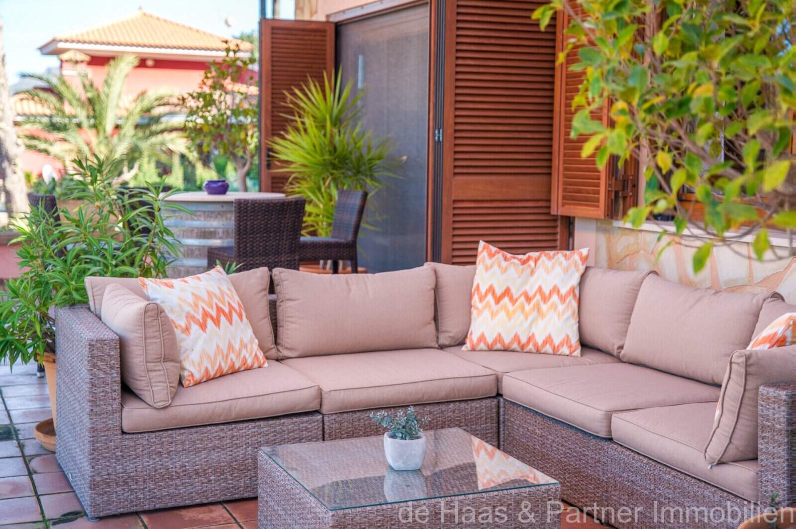 Der gepflegte Garten rund ums Haus ist mediterran gestaltet. Das Haus wurde ständig auf dem neuesten Stand gehalten. So wurden Doppelverglasungs-Fenster und -Türen 2014 erneuert sowie die Dachisolierung und komplette Dachsanierung 2015 durchgeführt. Eine neue Solaranlage sowie die Erneuerung des Brenners und der Heizkörper für die Ölzentralheizung wurden 2025 realisiert.
