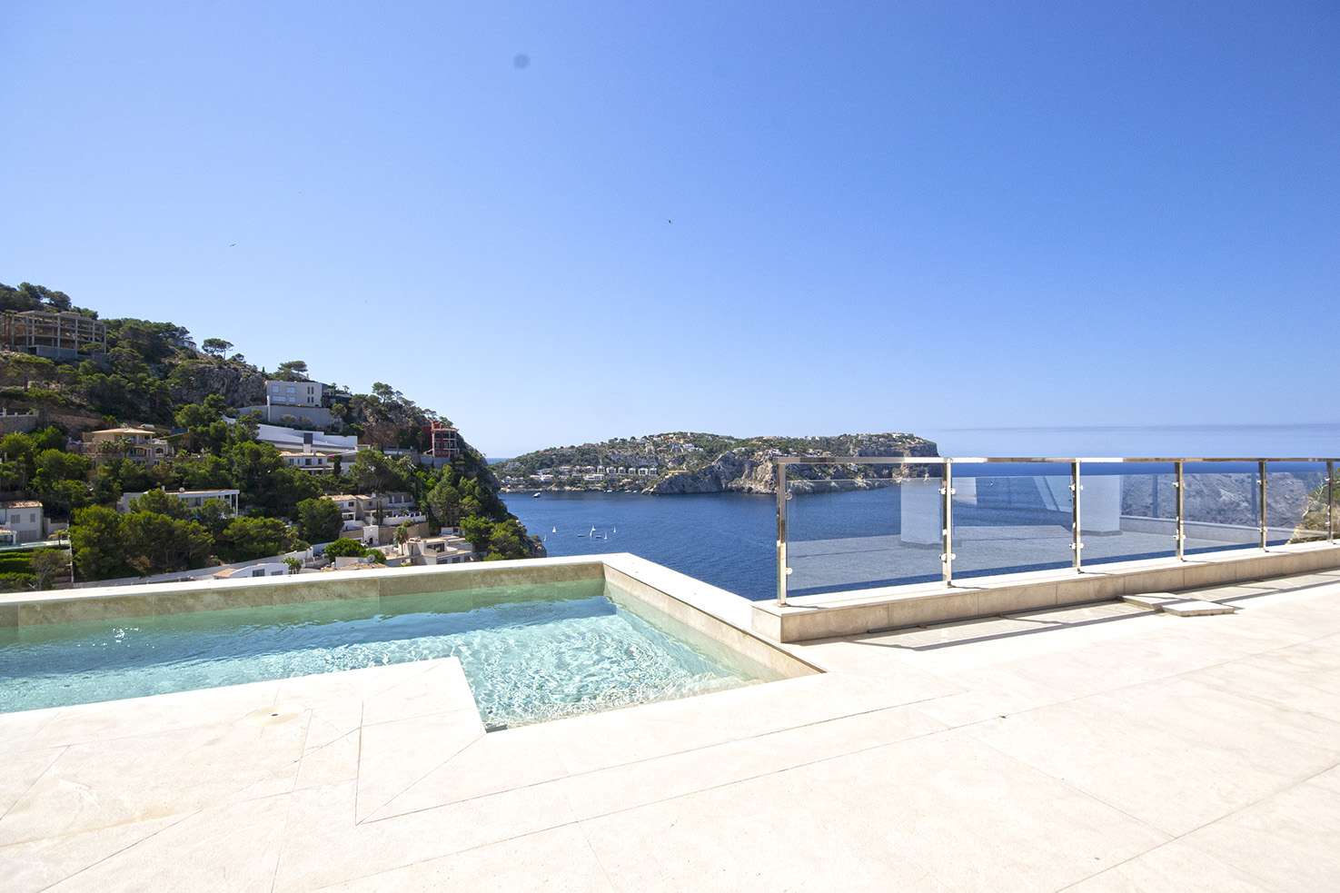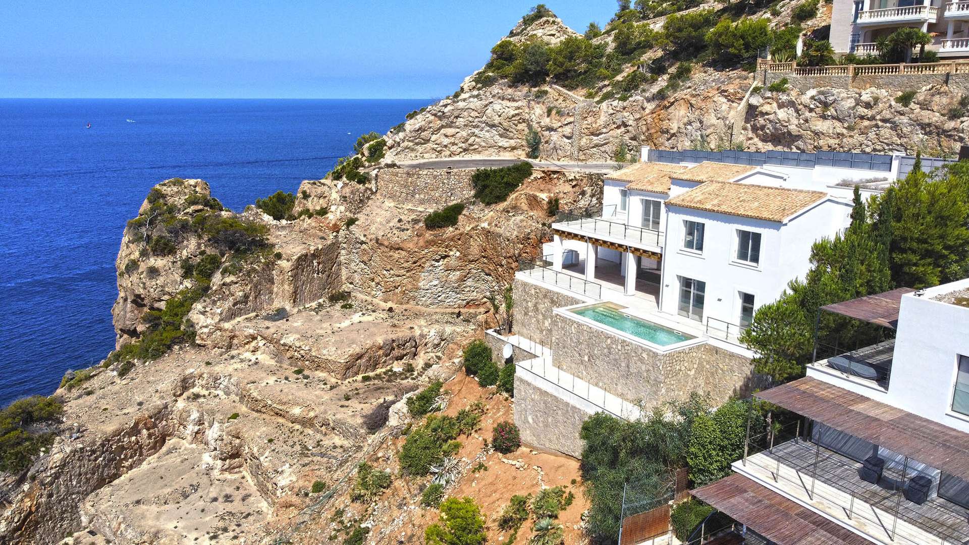 Villa en Puerto de Andratx para comprar, Piscina y Vistas al mar: Dieses luxuriöse Casa ist schwalbennestgleich an den Felsen über Port Andratx gebaut und hat einen einzigartigen Blick über den Hafen und das Meer.