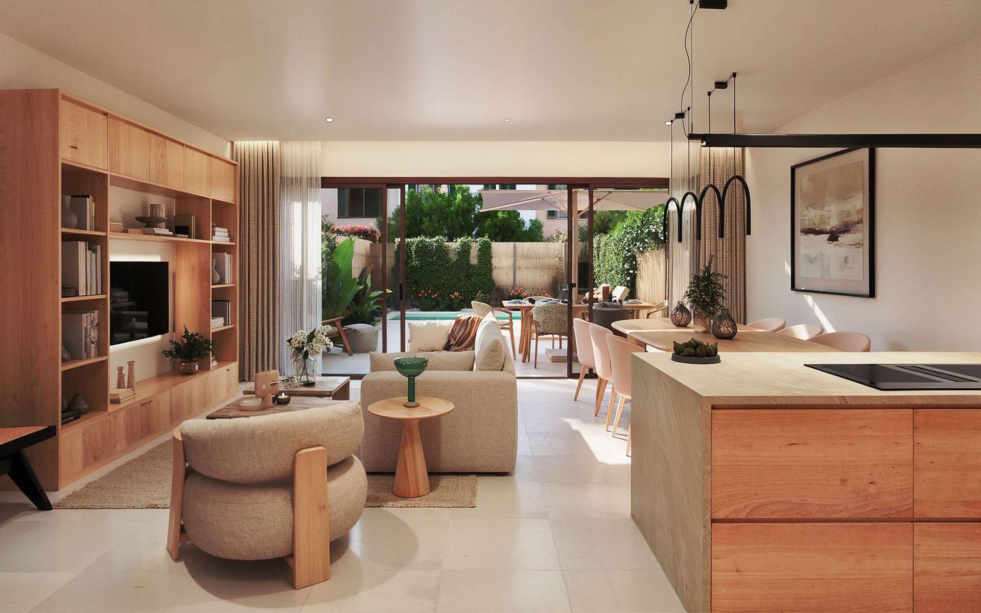 Edificio nuevo Casa en Campos comprar, Piscina: Im Herzen von Campos, umgeben von der natürlichen Schönheit Mallorcas und nur wenige Minuten vom spektakulären Strand Es Trenc entfernt, befindet sich Son Vanrellet – eine schlüsselfertige Wohnanlage, die das Konzept von Zuhause neu definiert. Dieses exklusive Projekt verbindet traditionelle mallorquinische Architektur mit modernen Merkmalen und nachhaltigen Materialien höchster Qualität.
