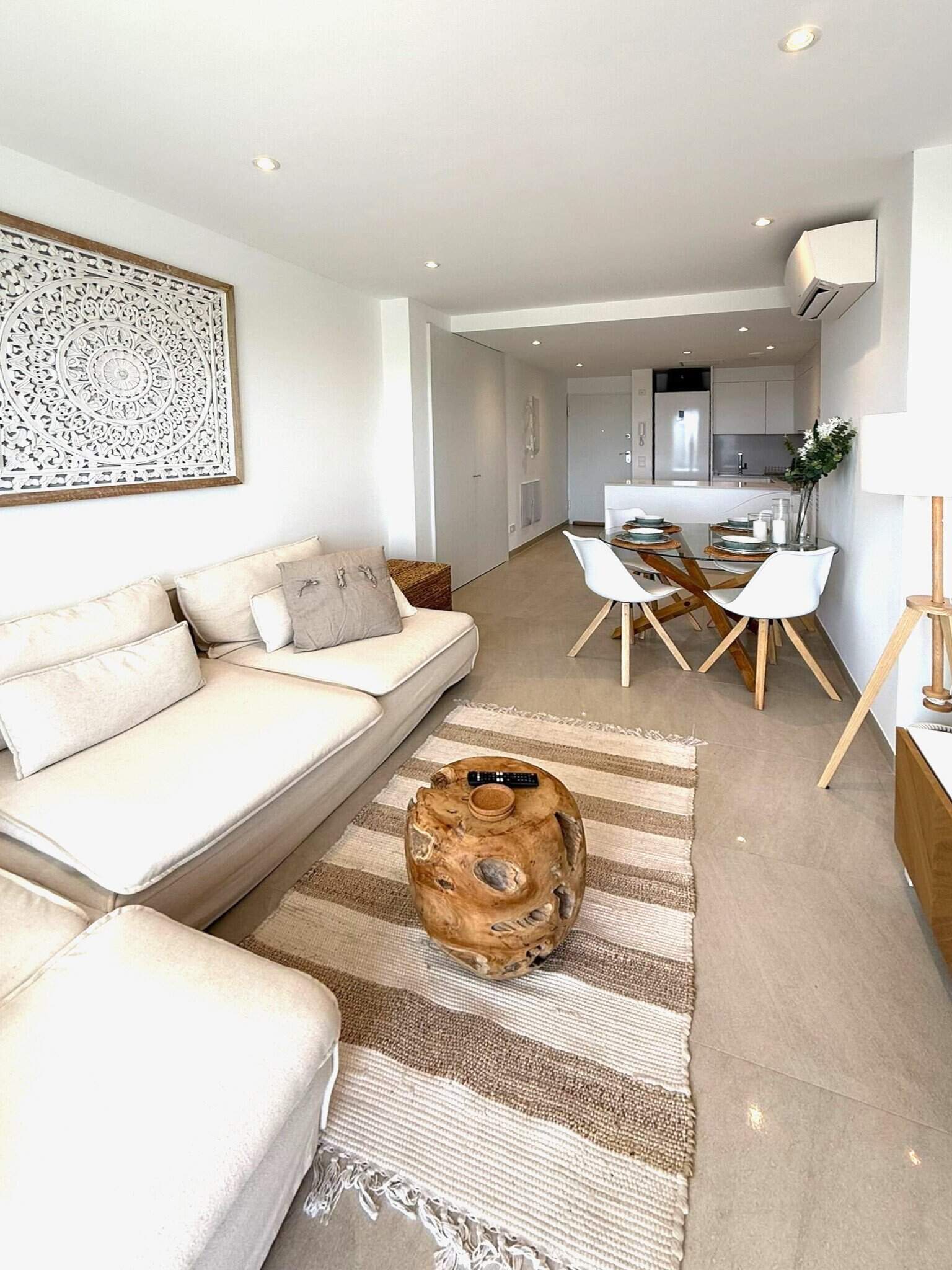 Auf 67m² Wohnfläche entfaltet sich ein durchdachtes Raumkonzept, das lichtdurchflutete Bereiche, klare Linien und eine hochwertige Ausstattung miteinander vereint. Der einladende Wohn- und Essbereich bildet das Zentrum des Zuhauses. Von hier aus – ebenso wie vom Hauptschlafzimmer – gelangt man direkt auf einen der beiden Balkone, die sich ideal als Erweiterung des Wohnraums eignen. Ob Frühstück im Freien oder entspannte Abendstunden: Der großzügige Außenbereich schafft ein perfektes Ambiente, um das mediterrane Klima in vollen Zügen zu genießen. Das zweite Schlafzimmer bietet Zugang zu einem weiteren privaten Balkon und eröffnet damit einen zusätzlichen Rückzugsort unter freiem Himmel. Zwei geschmackvoll gestaltete Badezimmer sorgen für eine angenehme Balance zwischen Komfort und Privatsphäre – ideal für Paare, Gäste oder Homeoffice-Nutzer.