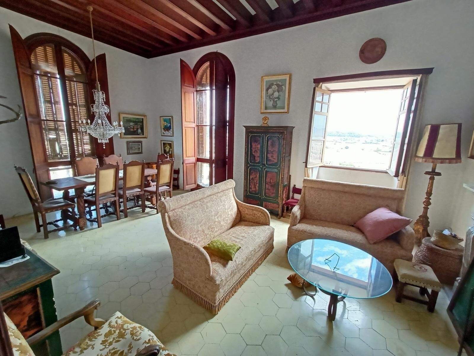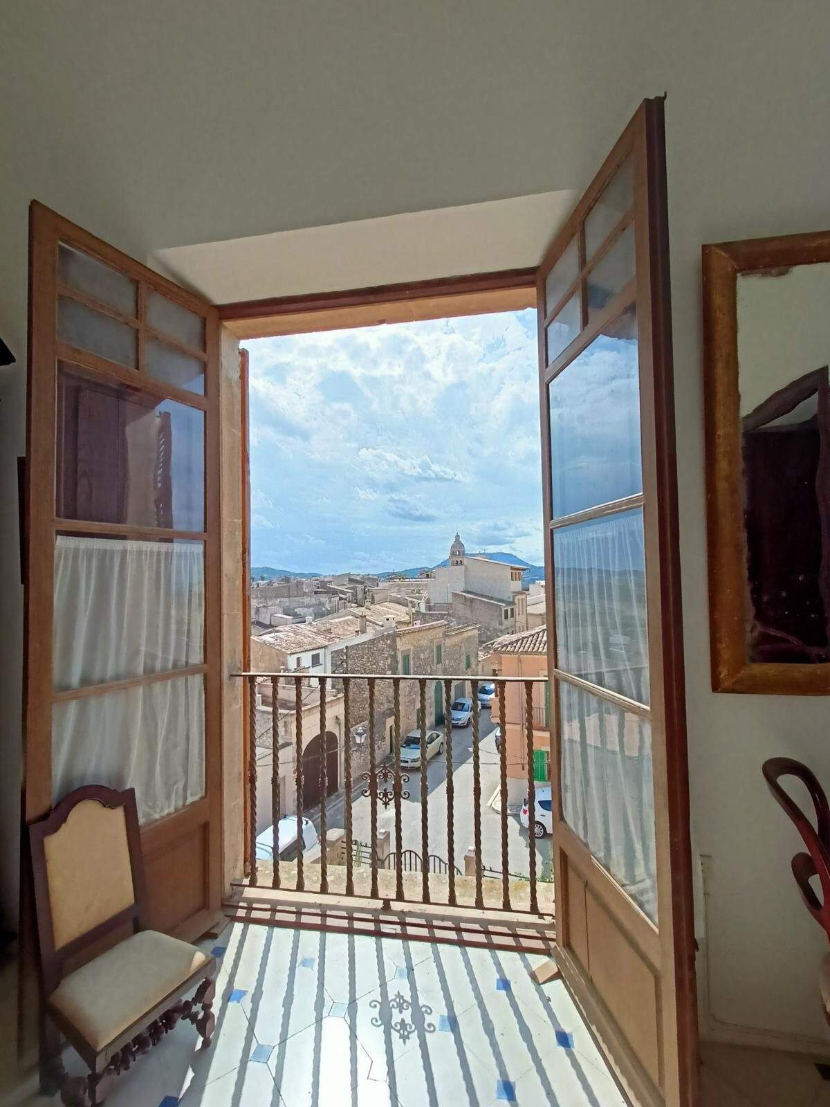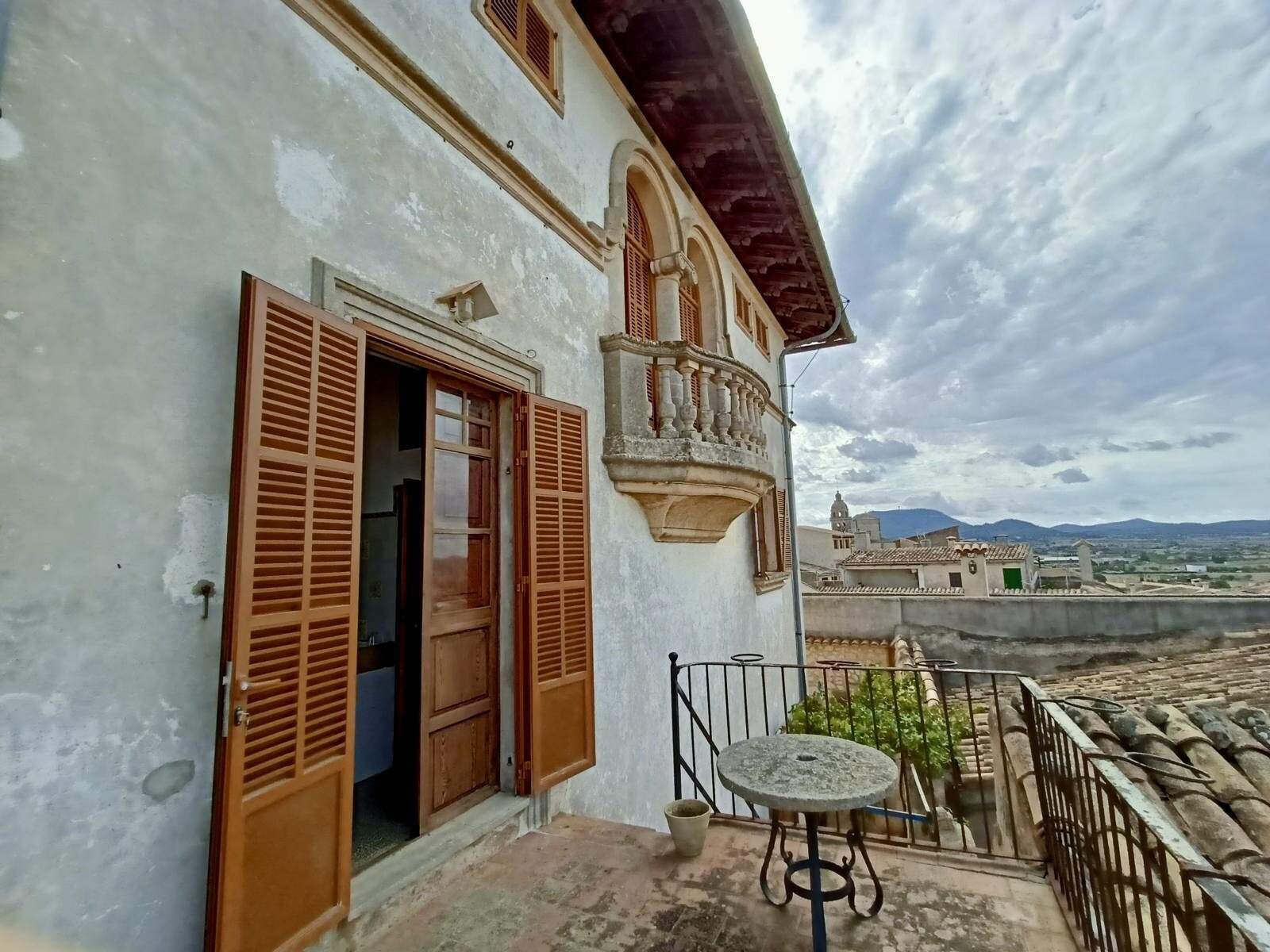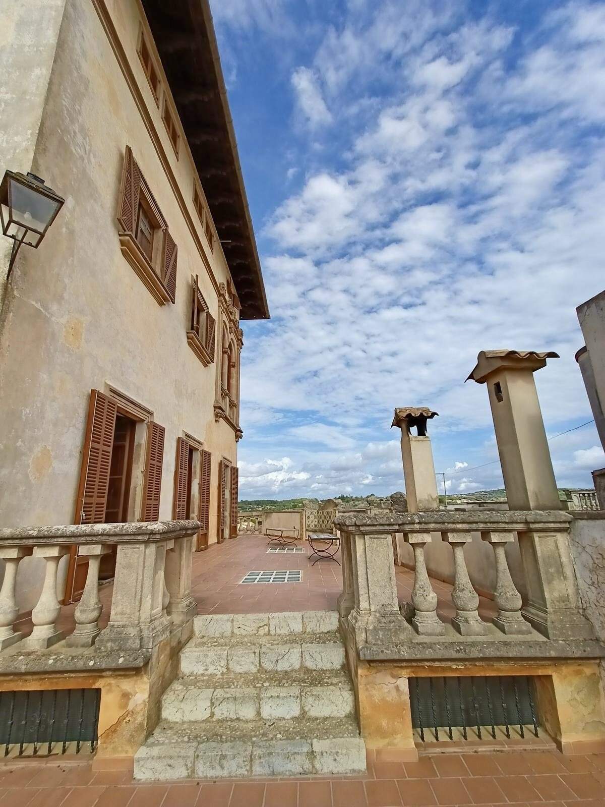 Palacio histórico de Guillem Forteza en Montuïri comprar: Este excepcional palacio se encuentra en una tranquila ubicación en el centro histórico de Montuïri, a sólo 30 minutos de Palma de Mallorca. Gracias a su posición elevada, ofrece unas vistas panorámicas únicas desde todas las plantas y en todas las direcciones - del pintoresco pueblo, la imponente iglesia, los campos ondulados, el paisaje de colinas, la majestuosa montaña de Randa y la impresionante sierra de Tramuntana. Tres amplias terrazas de aprox. 70m² ofrecen maravillosos espacios abiertos para disfrutar de estas espectaculares vistas.