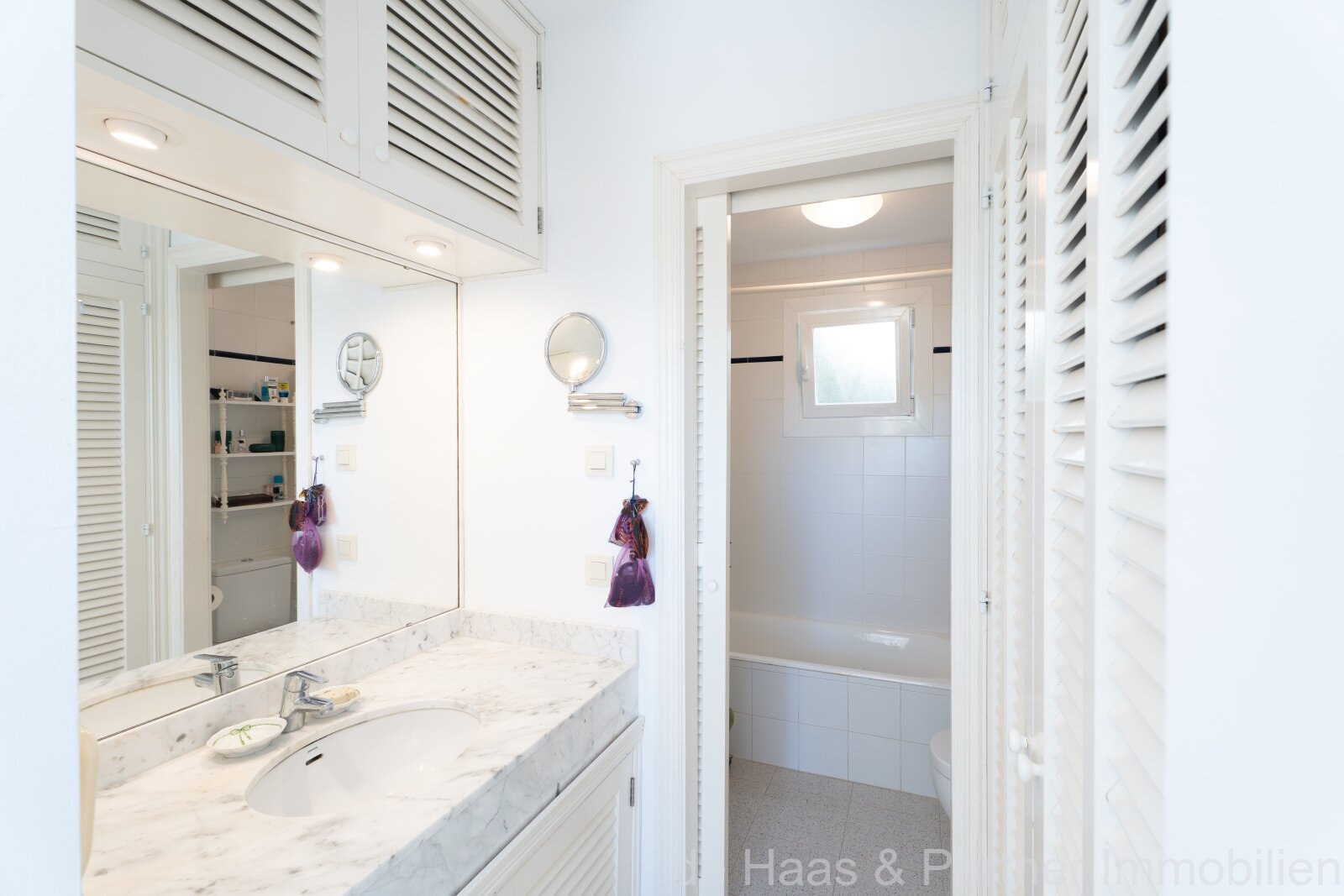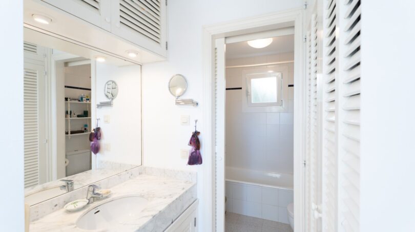 Vor dem Wohnzimmer und dem Masterschlafzimmer befinden sich zwei große nach Süden ausgerichtete Terrassen mit Markisen, von denen man einen wunderschönen Meerblick genießen kann. Es steht auch ein kleiner Hauswirtschaftsraum zur Verfügung.