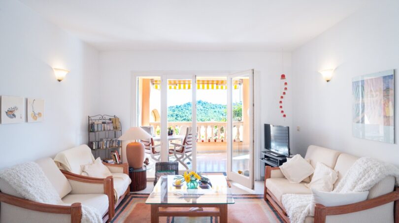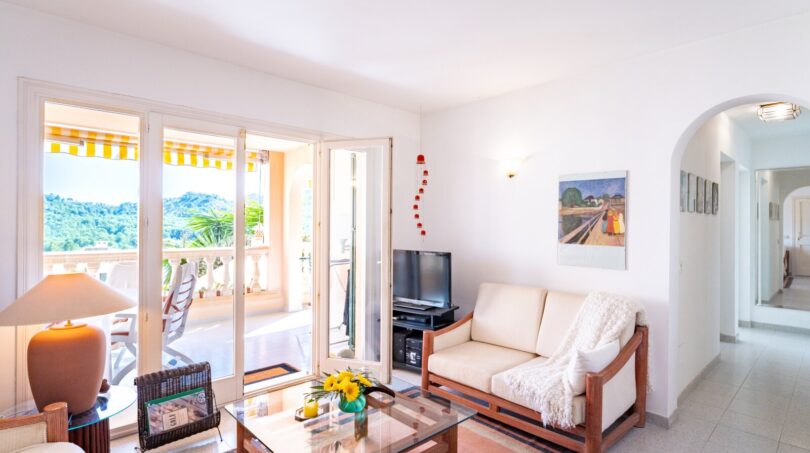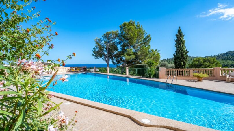 Plano zu kaufen in Font de Sa Cala mit Meerblick: das Apartment befindet sich in einer sehr gepflegten Wohnanlage oberhalb vom Ort Font de Sa Cala. Von allen Räumen hat man einen schönen Blick bis zum Meer. Es gibt einen sehr großen Gemeinschaftspool in der Nähe der Plano. Außerdem stehen Parkplätze in unmittelbarer Nähe zur Verfügung.