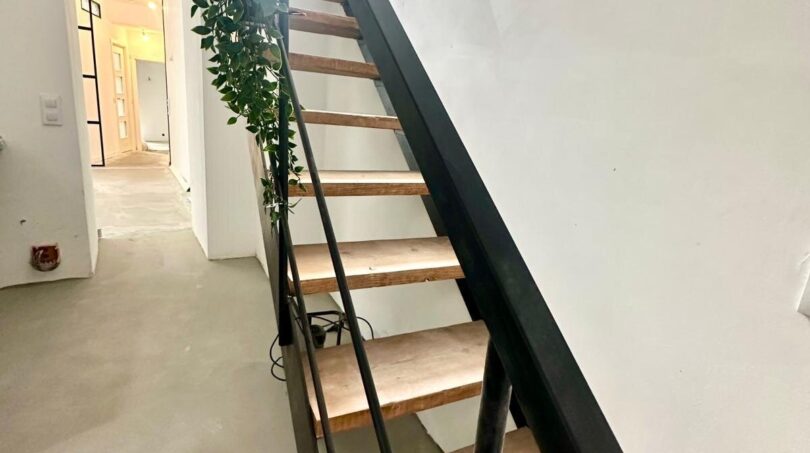 En Plano befindet sich in einem 2-Familien-Haus, fußläufig zu Cafés, Boutiquen und dem zentralen Marktplatz. Die Wohnfläche von 90m² teilt sich wie folgt auf: