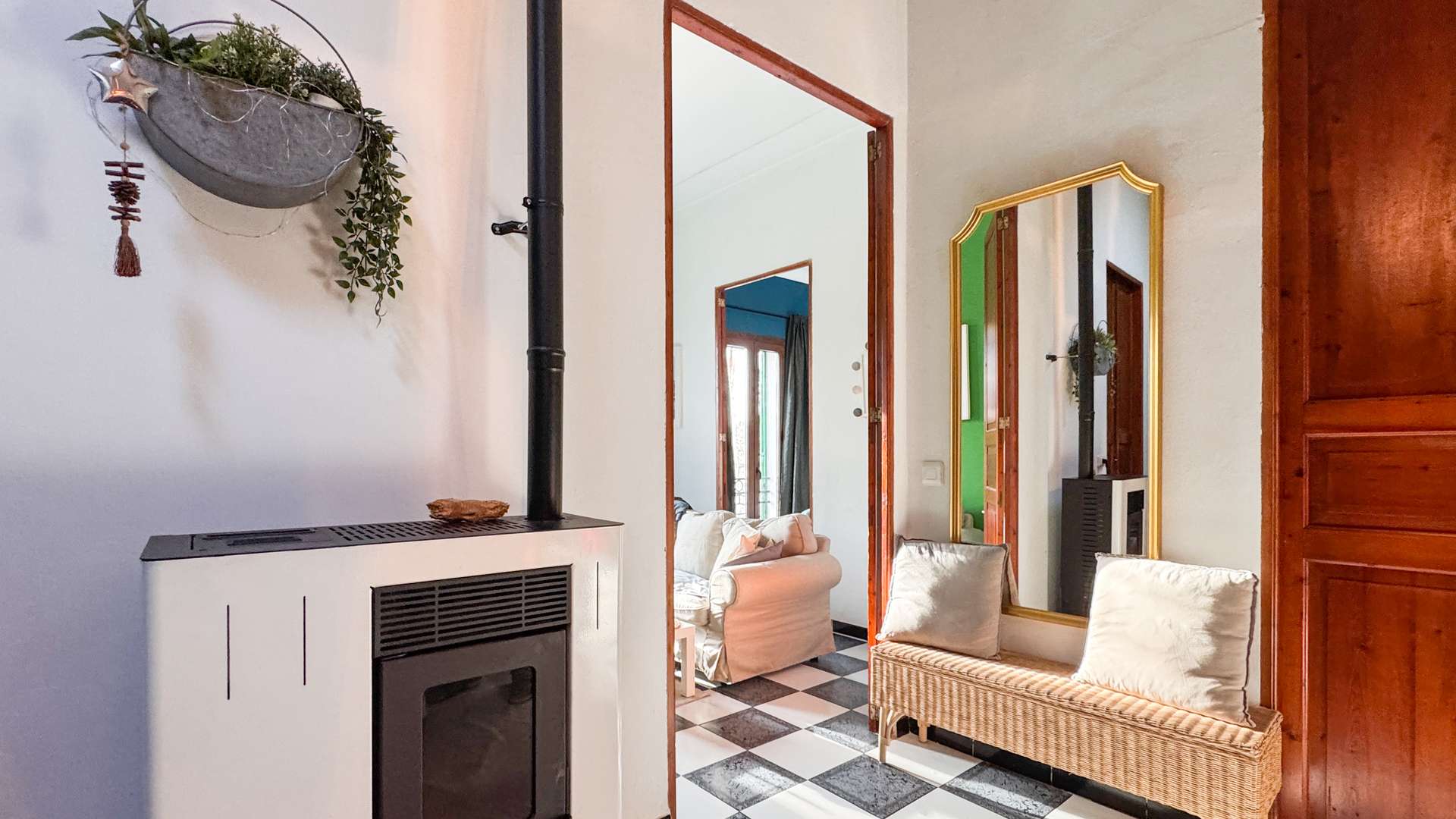 Zwei Pelletöfen sorgen für behagliche Wärme, ebenso 2 Klimaanlagen (2024) in den Schlafzimmern, während Dreifachverglasung im Straßenbereich und ansonsten Doppelverglasung für eine gedämpfte Geräuschkulisse trotz zentraler Lage sorgen.