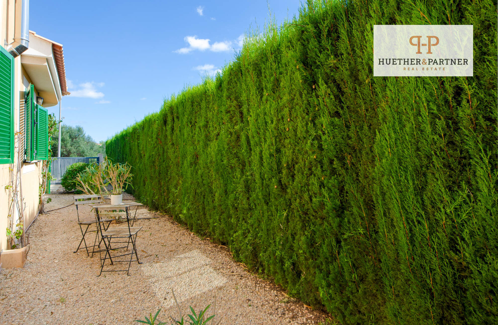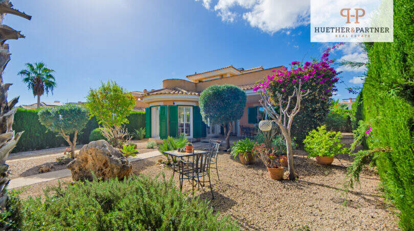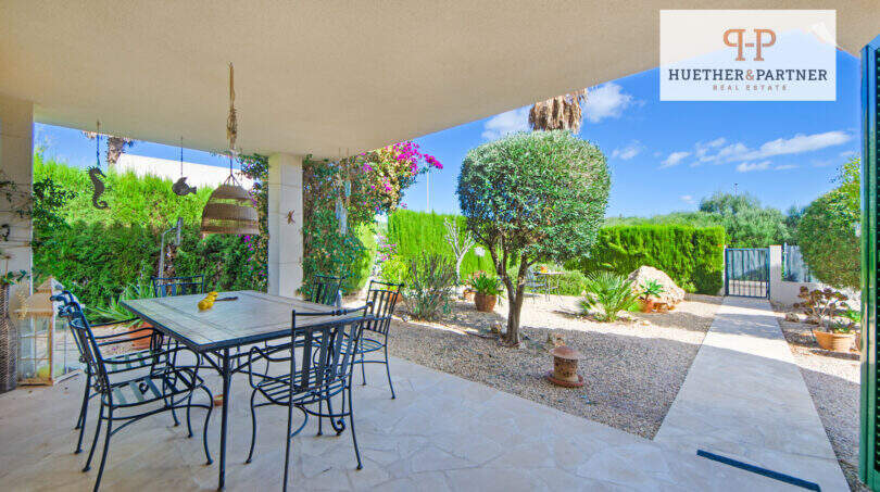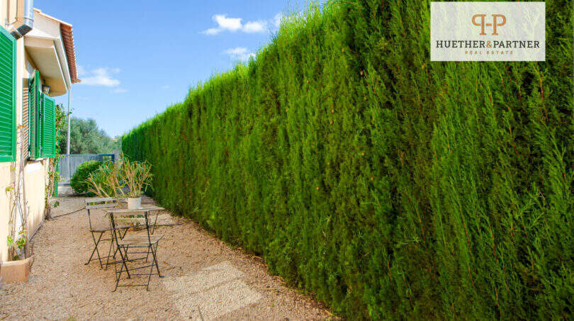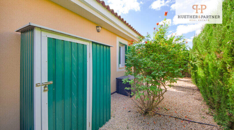 Der liebevoll gestaltete Garten präsentiert Zypressen, Oleander, Bougainvillea, Palmen und Olivenbäume und beinhaltet 3 schattige Sitzbereiche, die dazu einladen, die ruhige Umgebung zu genießen, während Aromen der mediterranen Pflanzen Ihre Sinne verwöhnen.