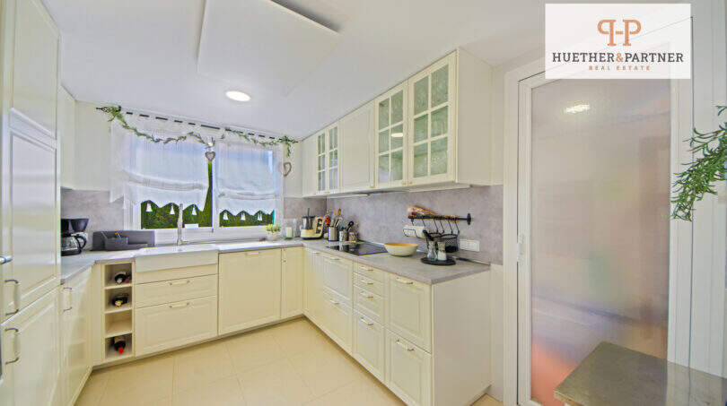 Das bezaubernde Luxus-Chalet besticht durch eine offene, wohnliche Raumaufteilung. Die geschlossene Küche präsentiert sich in neuer cremefarbener Einbauküche im zeitlosen Landhausstil. Der helle Wohn- und Essbereich mit Erker und Pelletofen lädt zum Verweilen ein und sorgt an kalten Abenden für behagliche Wärme. Zusätzlich gibt es ein Duschbad mit Fenster sowie ein Schlafzimmer mit maßgefertigtem Einbauschrank.
