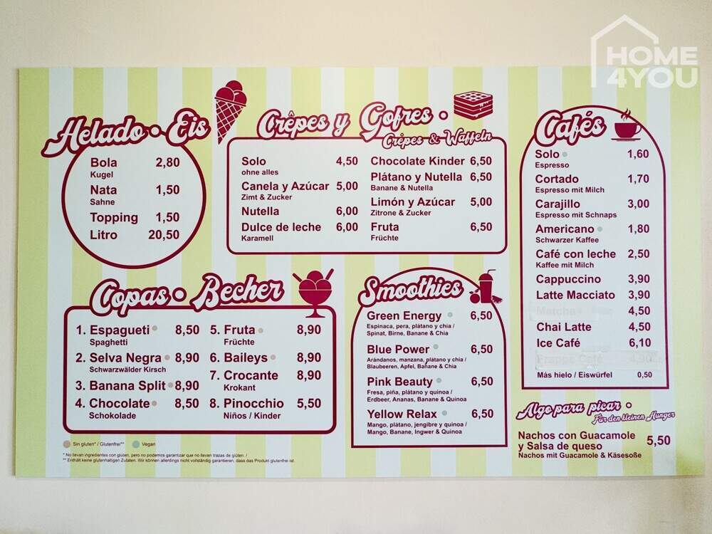 Die Lage in erster Meereslinie direkt an der Promenade in Sa Rapita sorgt für hohe Bekanntheit und konstant hohe Kundennachfrage. Von über 40 Sitzplätzen aus genießen Sie den Meeresblick über Mallorcas schönsten Naturstrand Es Trenc nach Colonia San Jordi bis zur Nachbarinsel Cabrera auf der großen Sonnenterrasse, oder Sie nehmen das Eis auf die Hand ans Meer oder in den Yachthafen von Sa Rapita aufs Boot.