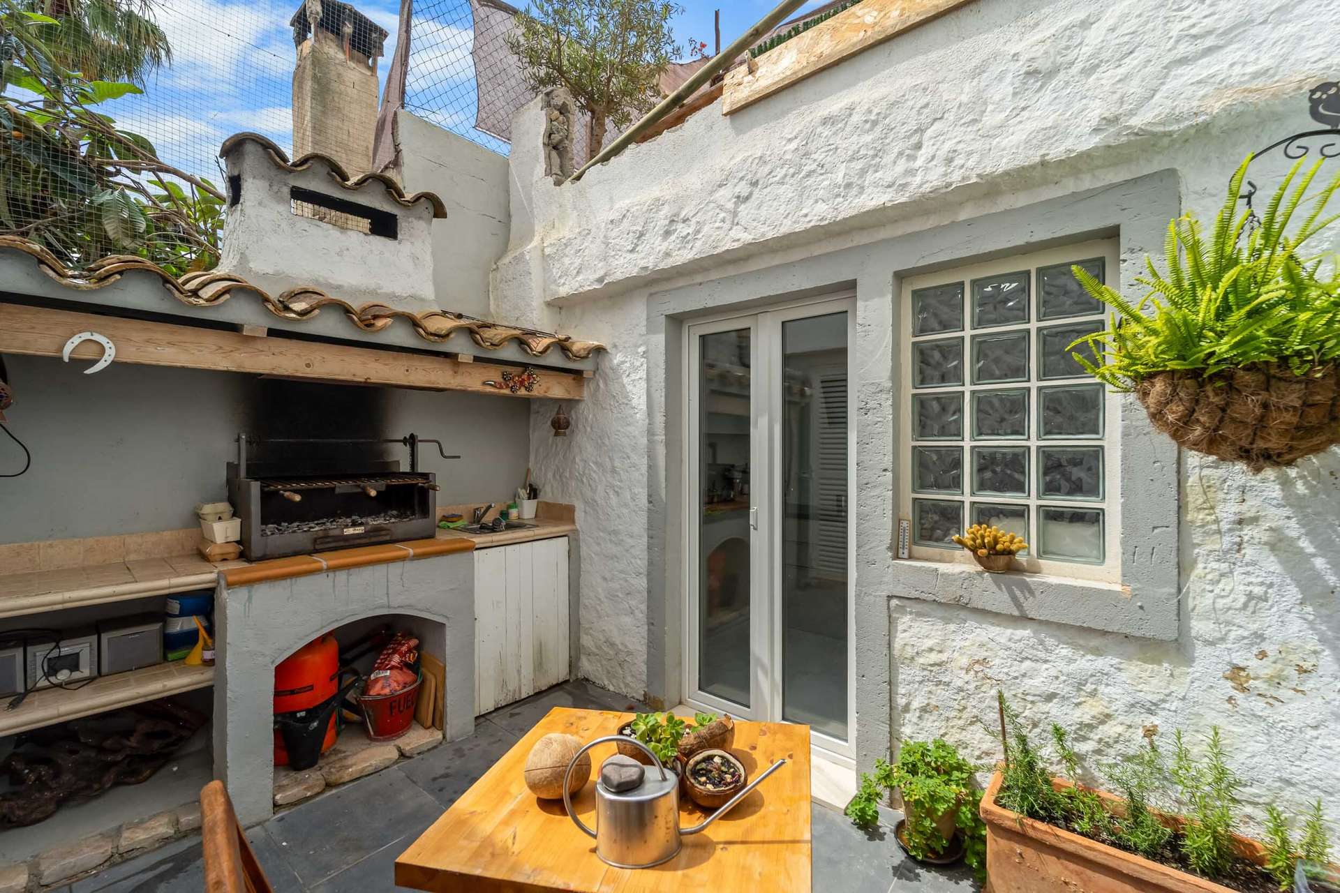 Im Erdgeschoss empfängt Sie ein großer und offener Raum mit einem gemütlichen Wohnzimmer, das fließend mit dem Esszimmer verbunden ist, ohne die Sichtverbindung zu verlieren. Die unabhängige, voll ausgestattete und möblierte Küche ist praktisch, ohne auf Design zu verzichten. Von hier aus hat man, wie auch vom Wohnzimmer aus, Zugang zu einer reizvollen 10m² großen Terrasse, die sich ideal zum Entspannen oder für gemeinsame Mahlzeiten im Freien eignet. Dieser Außenbereich verfügt über einen Waschbereich und einen Grill. Das Erdgeschoss verfügt außerdem über ein komplettes Badezimmer und eine private Garage, die den Komfort im Alltag erhöhen.