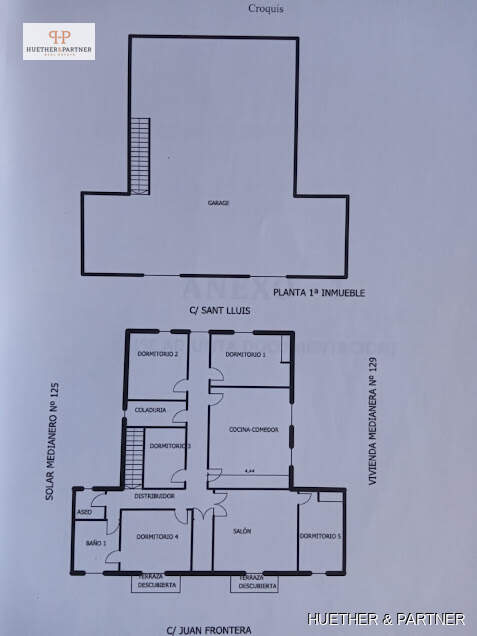 Das Haus verfügt über zwei geräumige Wohnzimmer mit offener Küchenzeile, die eine einladende Atmosphäre schaffen und ideal für gesellige Abende sind. Schlafzimmer. Insgesamt gibt es 5 Schlafzimmer, die ausreichend Platz für Familie und Gäste bieten. Zwei Badezimmer, eines mit Badewanne und das andere mit Dusche, sorgen für zusätzlichen Komfort. Weiter gibt es noch ein WC und Dusche im Hinterhof. Der Außenbereich bietet mehrere Terrassen und im Hinterhof ist viel Platz zum Entspannen und Genießen der mediterranen Sonne. Das Grundstück ist ringsherum begehbar, was zusätzliche Flexibilität und Privatsphäre bietet. Erweiterungsmöglichkeiten: Das Dachgeschoss kann noch ausgebaut werden, um zusätzlichen Wohnraum zu schaffen. Zudem bietet die Garage im Erdgeschoss Potenzial für eine Umgestaltung oder Erweiterung.