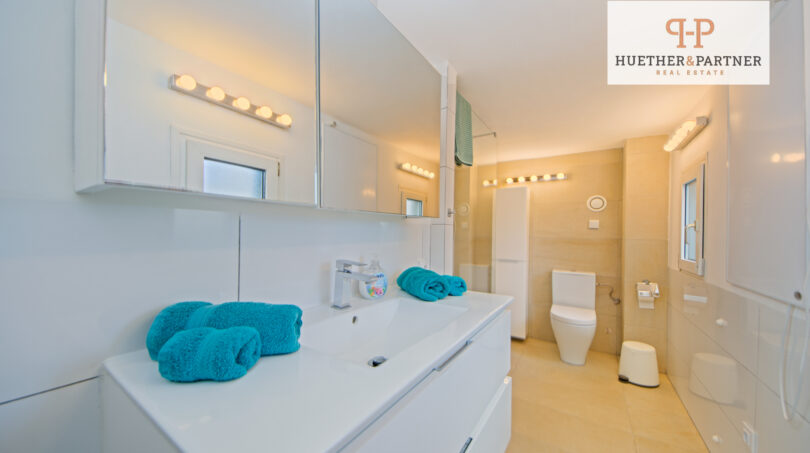 Der Garten lädt zum Entspannen ein, verfügt über eine Außendusche und bietet ausreichend Platz für einen Aufstellpool. Klimaanlagen (warm/kalt) in Wohn- und Schlafzimmern sorgen für angenehmes Wohnklima. Möbel und Einbauküche sind im Kaufpreis enthalten, sodass Sie sofort einziehen oder vermieten können.
