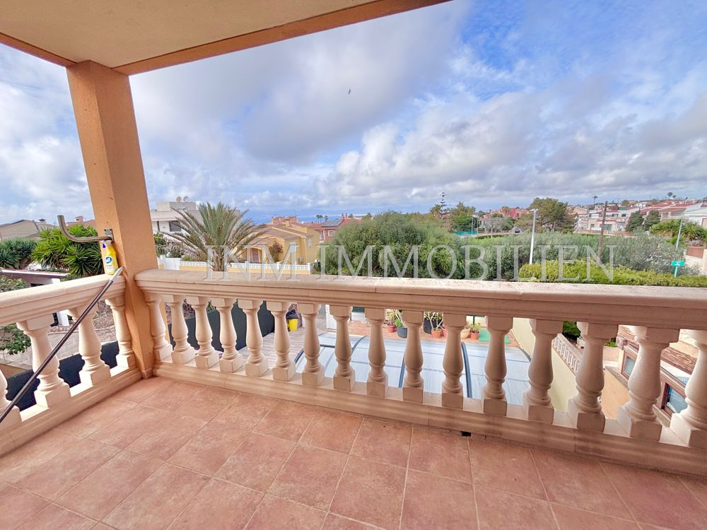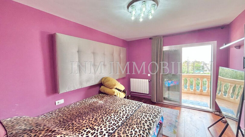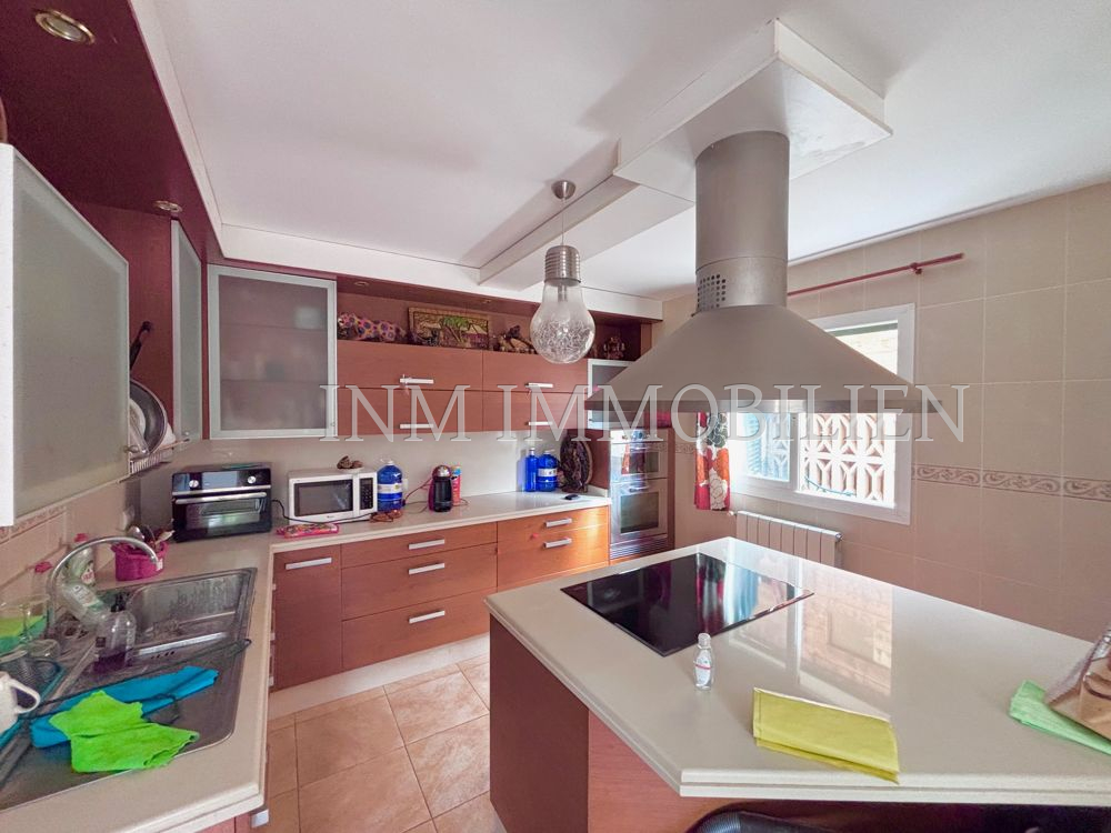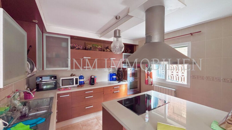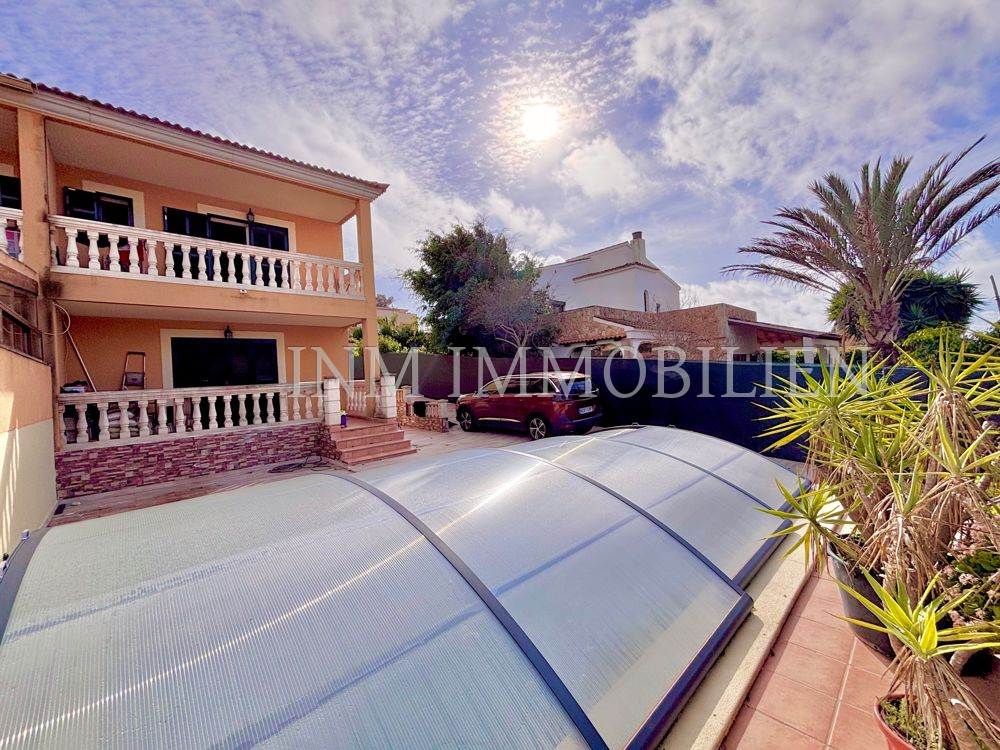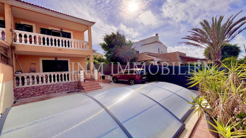Das Haus verfügt über eine Wohnfläche mit ursprünglich vier Doppelschlafzimmern, aktuell sind es drei. Es bietet drei Badezimmer, zwei davon mit Whirlpool-Badewanne, und großzügige, unverbaute Ausblicke auf Palma und eine angrenzende Grünzone. Die separate Küche mit angrenzendem Essbereich sorgt für eine praktische Raumaufteilung, während das große Wohn- und Esszimmer mit einer Fläche von etwa 35m² direkten Zugang zur überdachten Poolanlage bietet. Der private Pool mit den Maßen 7×4 Meter kann nach Bedarf geöffnet oder geschlossen werden.