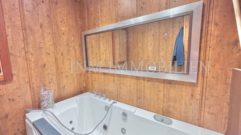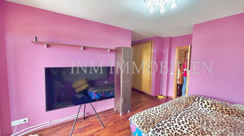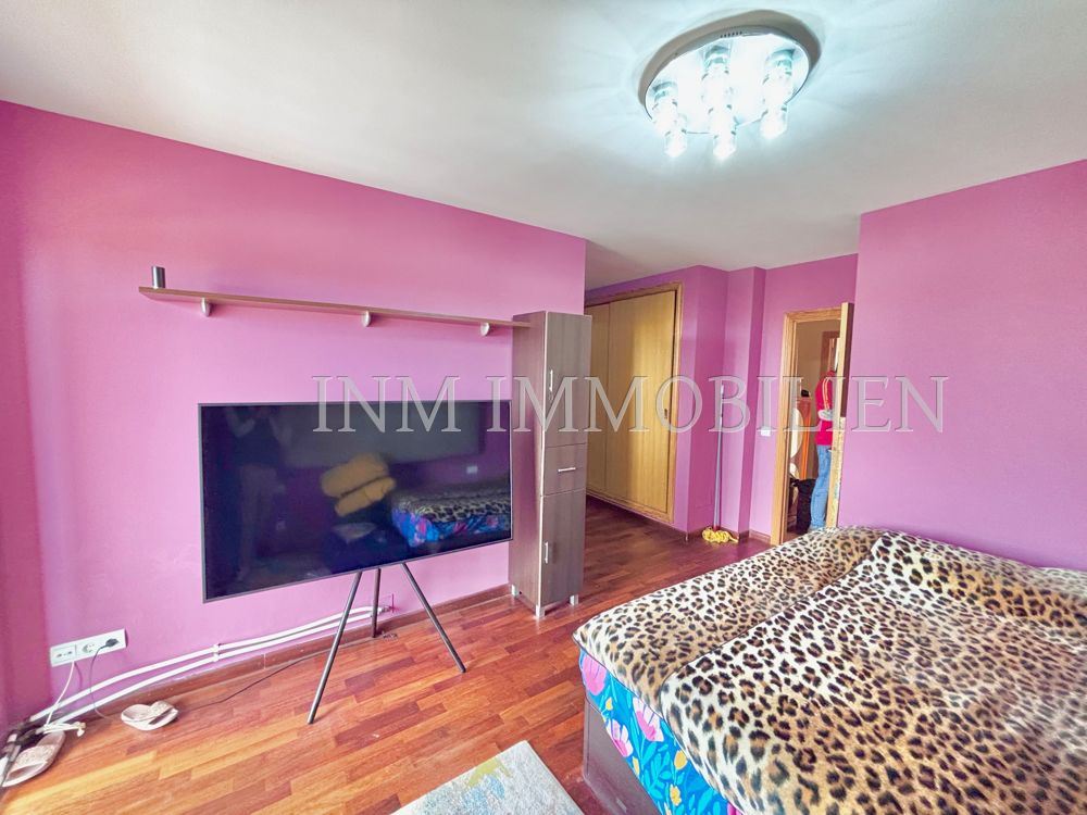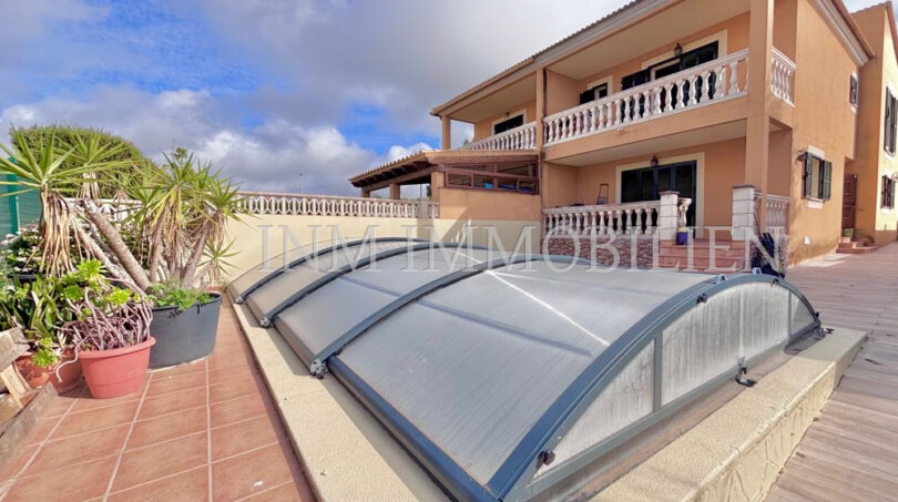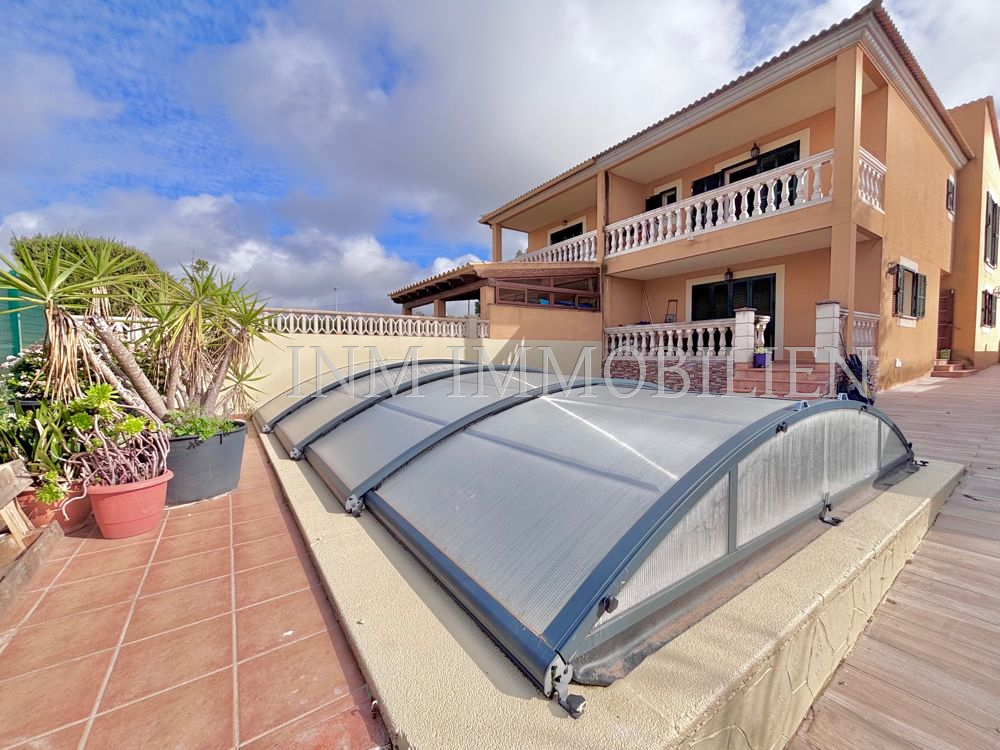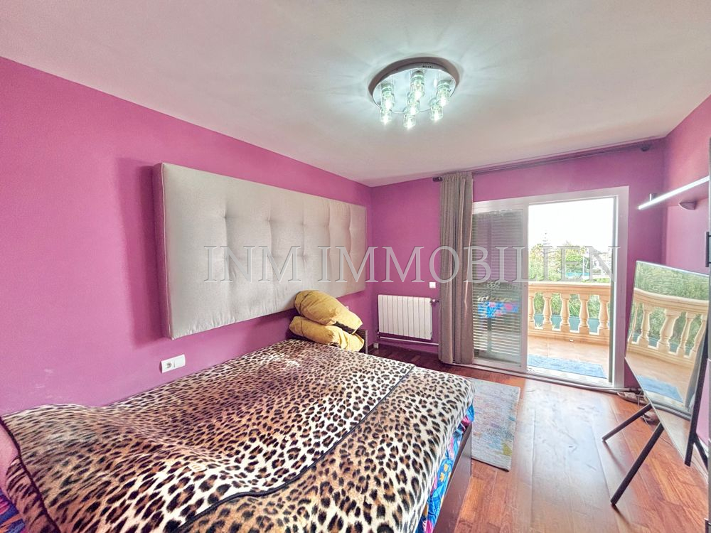Das Haus verfügt über eine Wohnfläche mit ursprünglich vier Doppelschlafzimmern, aktuell sind es drei. Es bietet drei Badezimmer, zwei davon mit Whirlpool-Badewanne, und großzügige, unverbaute Ausblicke auf Palma und eine angrenzende Grünzone. Die separate Küche mit angrenzendem Essbereich sorgt für eine praktische Raumaufteilung, während das große Wohn- und Esszimmer mit einer Fläche von etwa 35m² direkten Zugang zur überdachten Poolanlage bietet. Der private Pool mit den Maßen 7×4 Meter kann nach Bedarf geöffnet oder geschlossen werden.