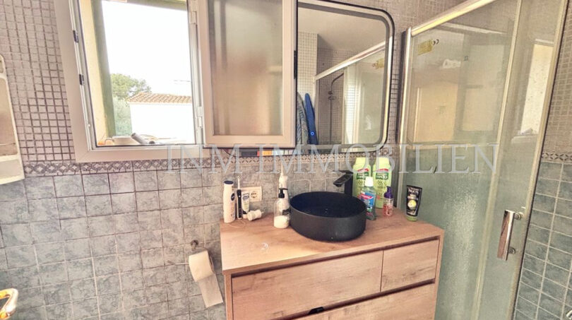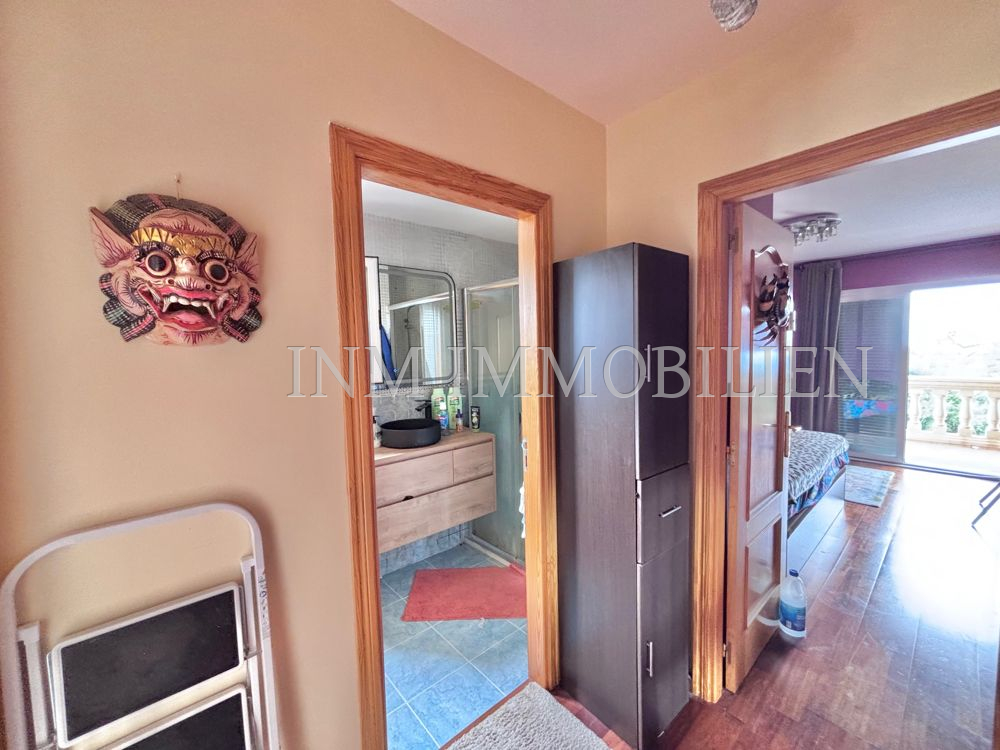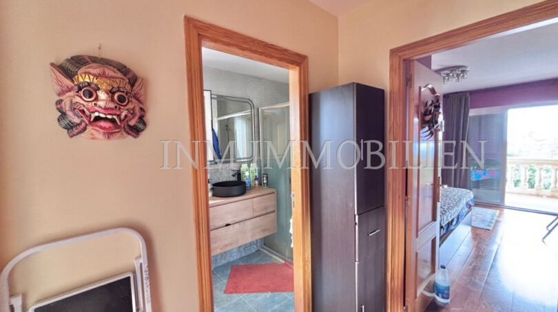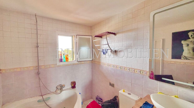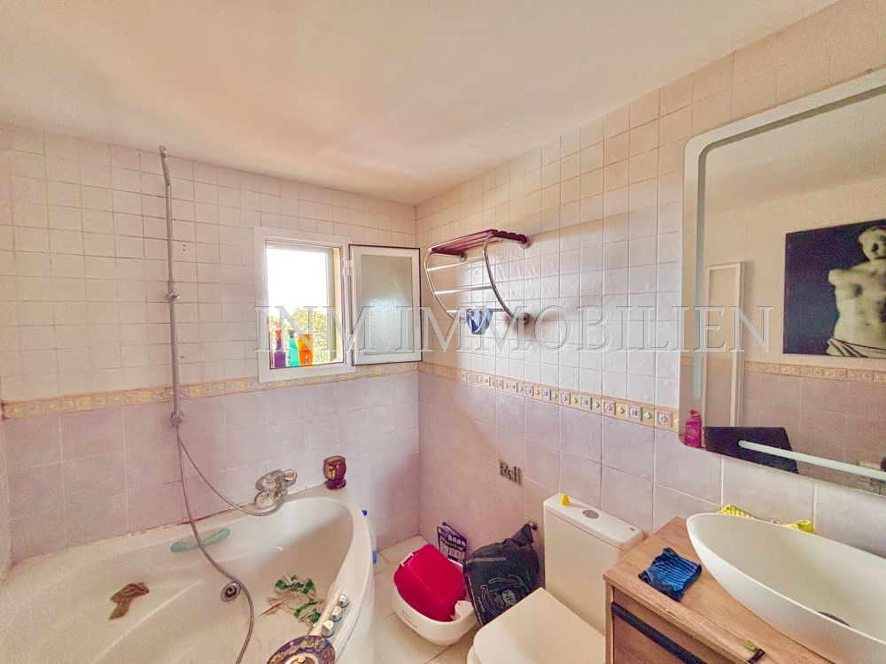 Zum Verkauf steht ein Doppelhaus (DHH) in Badia Blava, nur 200 Meter von der Bushaltestelle mit Verbindung nach Palma entfernt. Diese ruhige Wohngegend an der Südküste Mallorcas ist bekannt für ihre beeindruckenden Klippen, die spektakuläre Ausblicke auf das Meer und die Bucht von Palma bieten. Die Umgebung zeichnet sich durch eine entspannte Atmosphäre aus und bietet gleichzeitig eine gute Anbindung an Palma sowie nahegelegene Strände und Golfplätze.