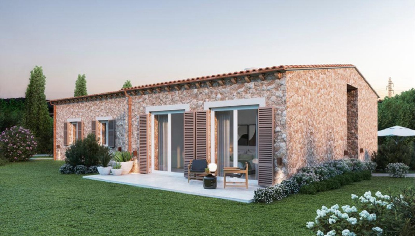Finca kaufen in Manacor mit Pool, Neubau: die Finca Luna in Manacor befindet sich in der Fertigstellung zum Herbst 2024. Sie besticht nicht nur durch ihre Eleganz, sondern vor allem durch ihre absolute Autarkie. Je nach Baufortschritt haben Sie die Möglichkeit zur Mitgestaltung. Neueste Technologie und außerordentliche Materialien garantieren höchste Lebensqualität. Dieses Einfamilienhaus im Finca-Stil bietet ein Höchstmaß an Privatsphäre. Das Grundstück von ca. 14.680m² in Alleinlage ist durch etwa 160m Natursteinmauer eingefriedet.