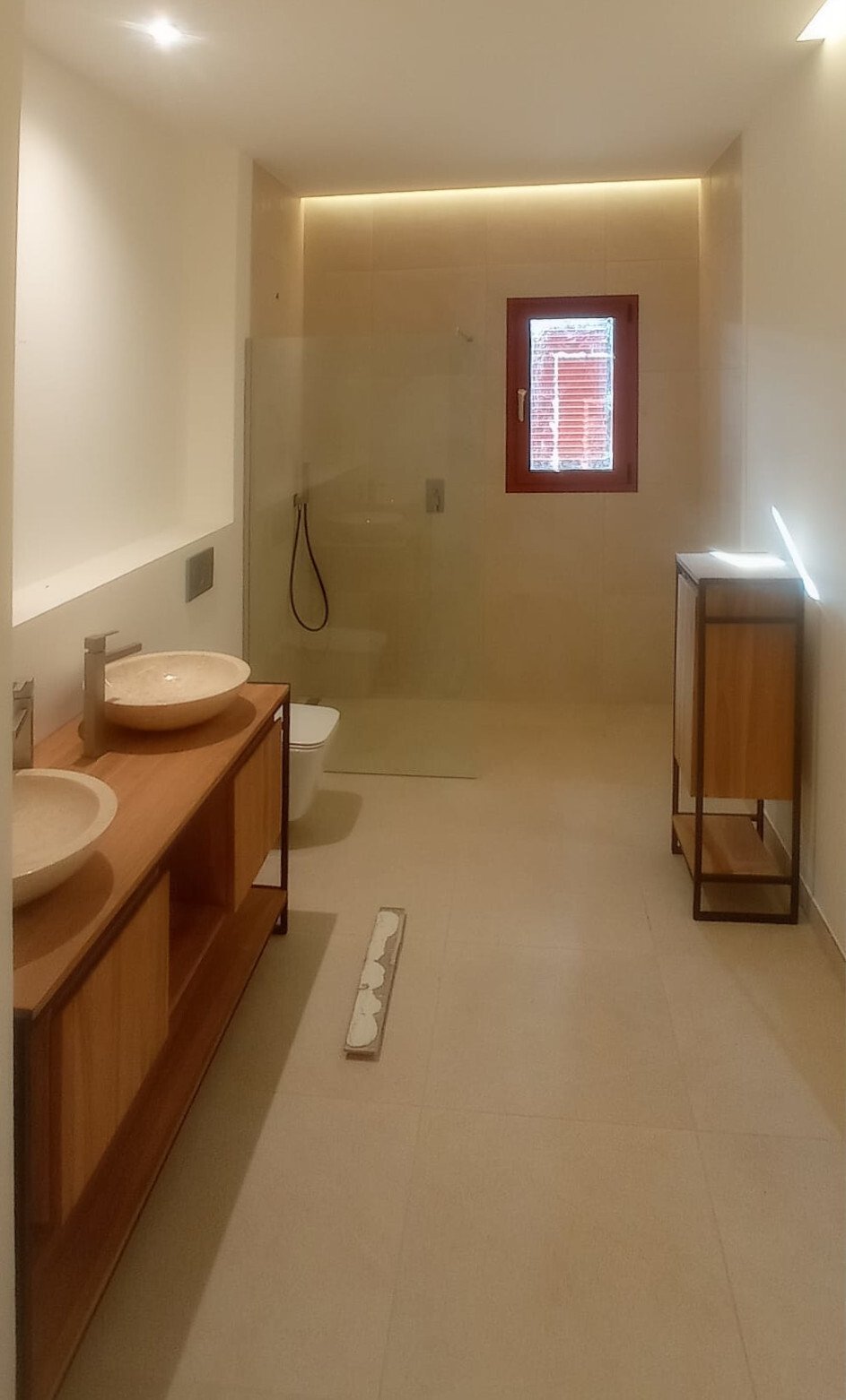 Exklusive Neubau-Finca für gehobene Ansprüche, komplett autark. Auf ca. 295m² Nutz- und Wohnfläche bietet der Grundriss einen großzügigen Wohn-Essbereich mit Kamin und offener Küche, Vorratsraum, nutzbar als Backupküche, Trockenraum sowie Platz für Waschmaschine und Trockner. Zusätzlich erschließen sich vom offenen Eingangsbereich ein Masterbedroom en suite, zwei weitere Schlafzimmer, ein Duschbad und ein Gästebad. Modernste Wärmepumpentechnik und zentrale Klimaanlagensteuerung greifen hier ineinander. Alle Wohn- und Schlafräume sind mit Fußbodenheizung und Klimaanlage ausgestattet und individuell temperierbar. Bodentiefe Fenster eröffnen einen Blick ins Grüne und auf die Erimita.